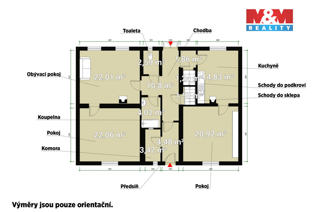 Nemovitost je napojena na všechny inženýrské sítě – elektřinu, vodu, plyn i kanalizaci. K domu náleží garáž (18m2), sklep, půda a zahrada, která nabízí dostatek prostoru pro posezení, drobné pěstování nebo klidný odpočinek.