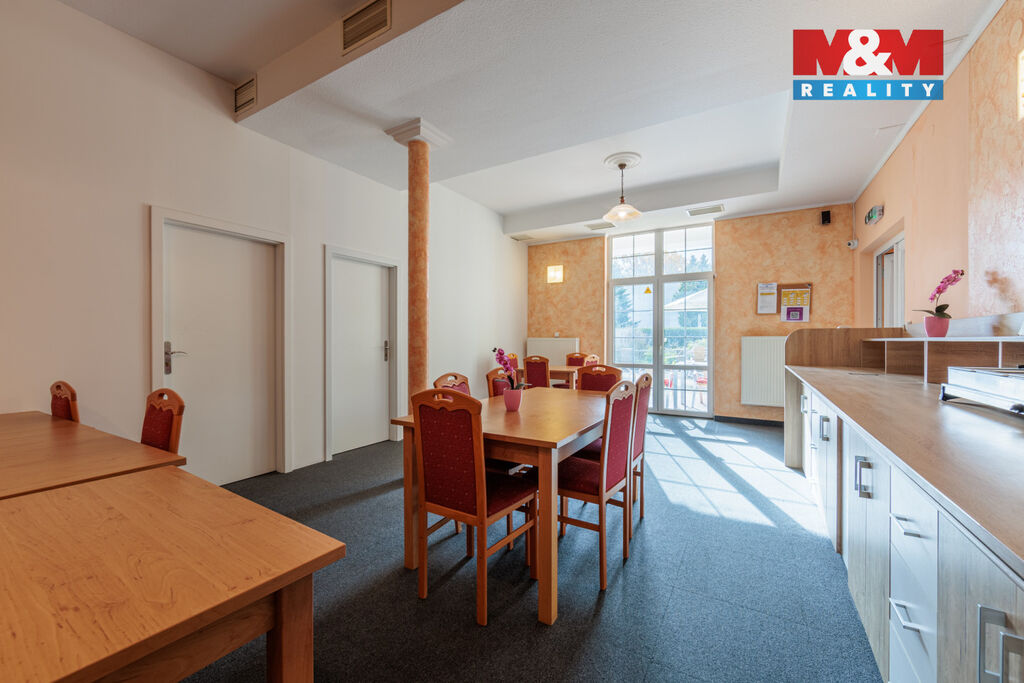 Jedinečná nemovitost (víceúčelová stavba) v klidné části obce Horní Lomany ve Františkových Lázních představuje ideální podnikatelský záměr v ubytovacích službách. Tento objekt ve velmi dobrém stavu s kapacitou 35 lůžek nabízí v 1.NP - byt 4+1, hala se schodištěm, recepce, restaurace s barem, soc. zař., kuchyně se zázemím (sklady, kotelna, úklidová místnost, přípravna), pokoj s vlastním soc. zař. pro ZTP. Ve 2.NP - chodba, 11 pokojů s vlastním soc. zař., sklad prádla, úklidová komora. Objekt je napojen na veřejné distribuční IS vody, kanalizace, elektřiny a plynu, vytápění objektu zajišťují dva plynové kotle s vlastními okruhy pro byt a penzion. Vedle objektu je zahrada s velkou garáží a zahradním domkem. Nezastavěné pozemky jsou oplocené, v převažující části zpevněné pojezdovou zámkovou dlažbou s 16 parkovacími místy. Zaujala Vás tato nabídka, neváhejte nás kontaktovat a domluvit si čas Vaší prohlídky. S financováním Vám může pomoci naše MMF.