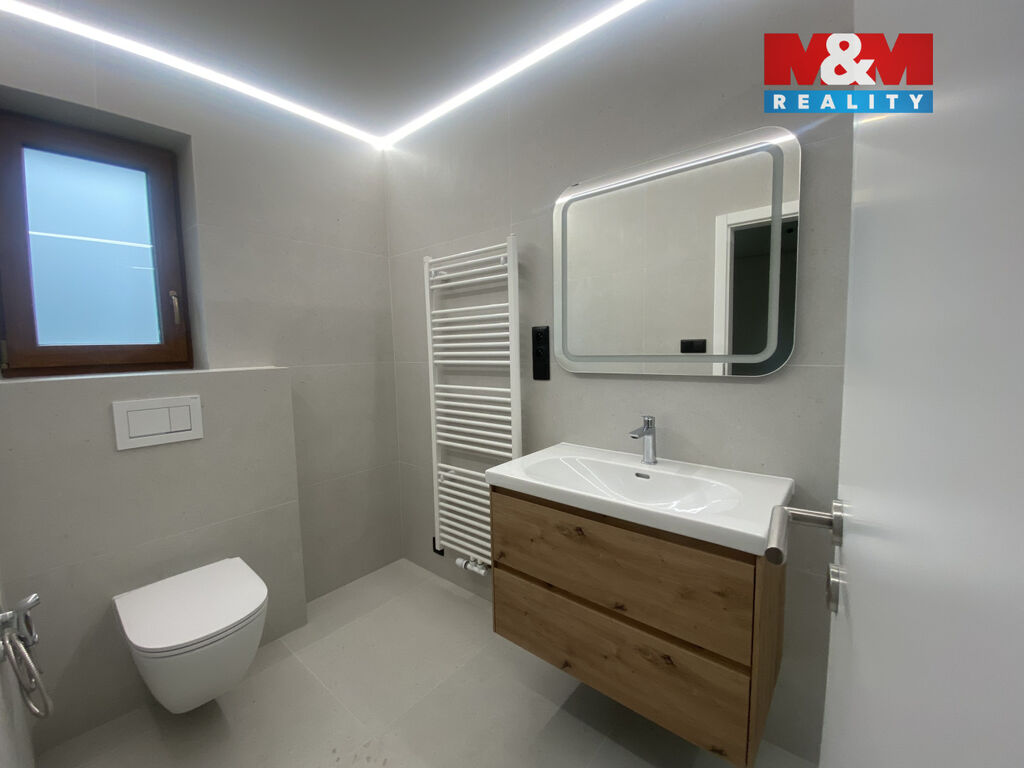 Nabízíme vám tuto krásnou novostavbu, na níž právě proběhla kompletní rekonstrukce a modernizace. Dům má 125 m2 užitné plochy a dispozici 4+kk. Má dvě koupelny, podlahové vytápění, novou kuchyňskou linku s vestavěnými spotřebiči. Z obývacího pokoje a ze dvou samostatných pokojů je vstup na krásnou a prostornou terasu, která je situovaná do zahrady. V obývacím pokoji je klimatizace a komín připravený na krb.. Z boku domu je místo na parkování, nebo je zde možné vybudovat zastřešení pro parkovací stání. V zadní části pozemku je zahradní domek, který je možné využít jako dílnu. Dům je napojený na veřejnou kanalizaci a vodovod. Podlahové vytápění a ohřev vody je zajištěno plynovým kotlem umístěným v technické místnosti, kde je místo i pro pračku a sušičku. Je zde i příprava na tepelné čerpadlo a fotovoltaiku. S financováním vám rádi pomohou naši hypoteční specialisté. Pojďte se podívat na tuto krásnou a novotou vonící nemovitost.