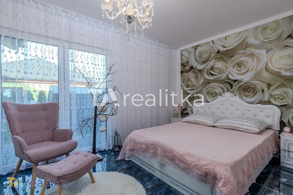 Každý pokoj disponuje balkónovými dveřmi, venkovními elektrickými žaluziemi a vnitřními žaluziemi den/noc. Dům má jeden samostatný záchod a druhý v koupelně. Okna jsou plastová s trojskly.