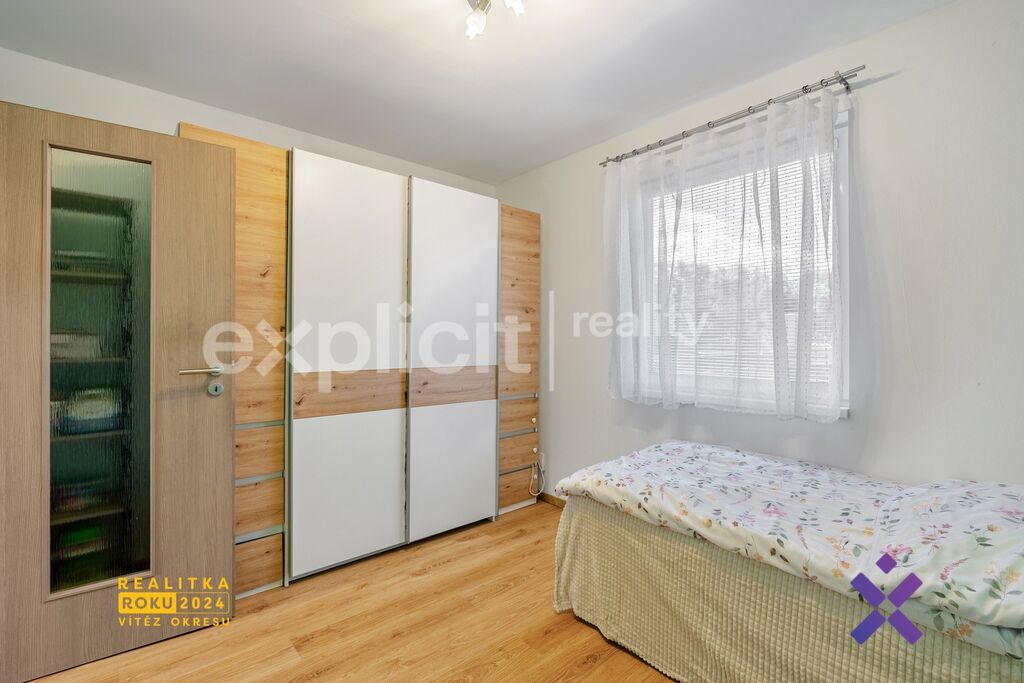 Dům má dvě plnohodnotná nadzemní podlaží. V přízemí hlavní části domu (5+kk) se nachází prostorný obývací pokoj s kuchyňským koutem a přímým vstupem na zahradu, dále pak technická místnost, koupelna a samostatný pokoj vhodný jako pracovna či ložnice. V podkroví se nachází celkem tři pokoje, koupelna a praktická komora.