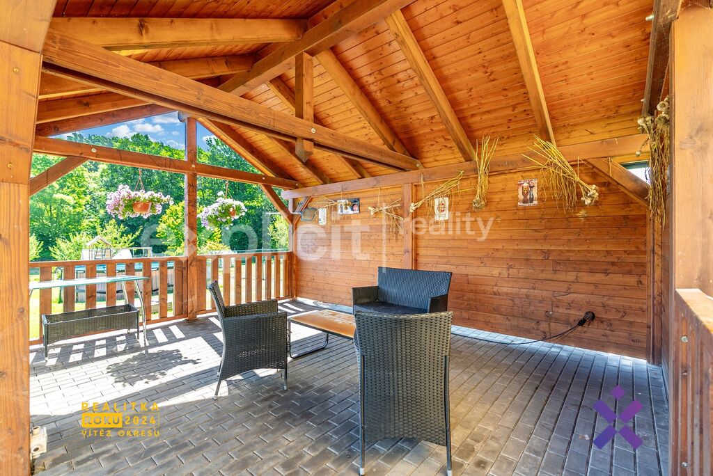 K domu náleží pozemky o celkové výměře 1 873 m², a nabízí tak široké možnosti využití – zahrada, pergola, bazén, dětské hřiště, skleník, zázemí pro drůbež, parkování. Příjezd k domu zajištěn z obecní komunikace.
