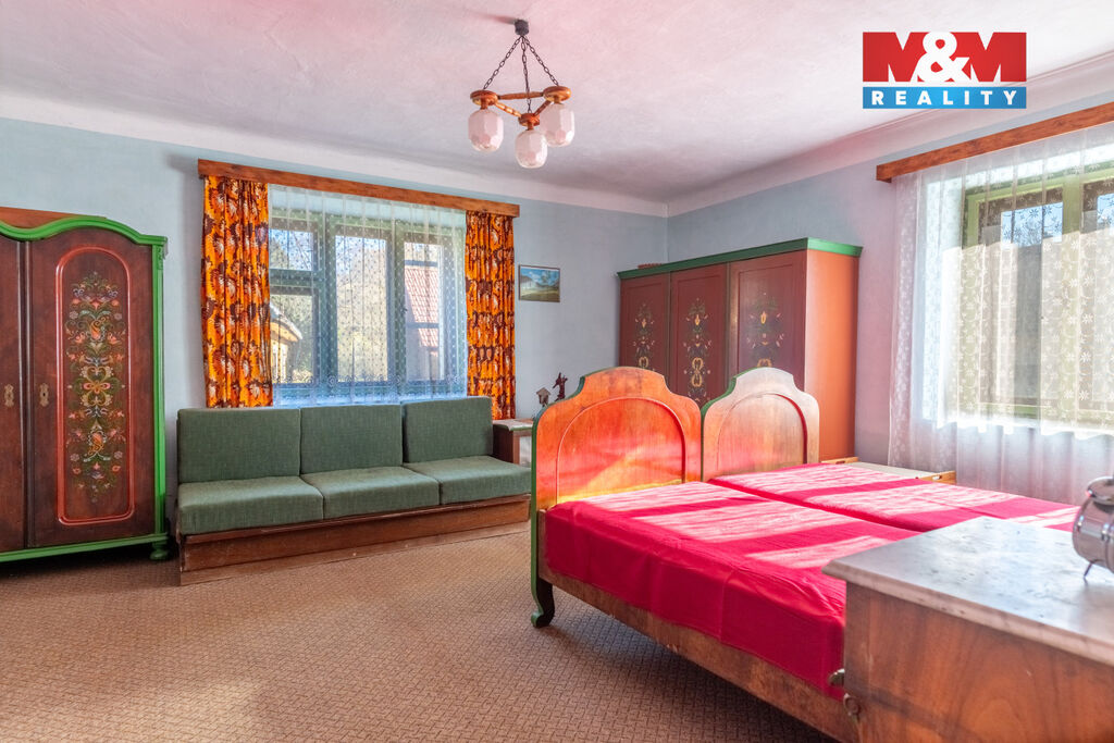 Nabízíme k prodeji původní chalupu, v malebné obci Ostrovec, část Dědovice, ideální pro milovníky klidu a rekreace. Dům ze smíšeného zdiva byl postaven před 150 lety a nabízí jedinečnou atmosféru díky původním prvkům. Dispozice nabízí celkem 5 místností - v přízemí kuchyni, obývací pokoj a ložnici, další dvě ložnice se nachází na půdě. Vedle obytné části je samostatný vstup do dílny. Vytápění je řešeno krbovými kamny, střešní krytina je z pálených tašek. Nemovitost není napojena na vodovod ani kanalizaci. Součástí prodeje je zahrada naproti domu o velikosti 119 m², kde je suchý záchod, kolna na nářadí a garáž. Možnost užívání vody z obecní studny. Dům se nachází v krásné krajině v blízkosti řeky Otavy. Nemovitost je vhodná pro rekreační využití, s možností cyklovýletů a turistiky. Celková plocha pozemku činí 218 m², užitná plocha 91 m². Více informací u makléře.