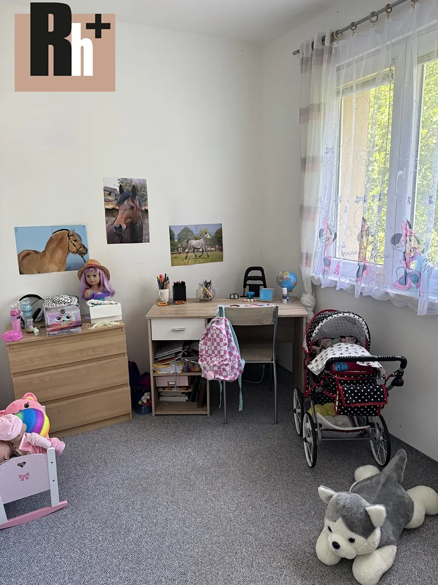 Obývací pokoj je velký a světlý, s průchozím přístupem do ložnice a z opačné strany do menšího dětského pokoje. Díky francouzskému oknu v ložnici je prostor příjemně vzdušný.