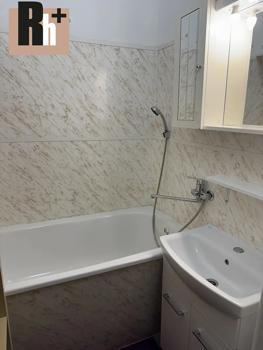 Vstup do bytu je z prostorné chodby s praktickými vestavěnými skříněmi. Z chodby se vpravo nachází samostatné WC a dále koupelna s vanou a umyvadlem.