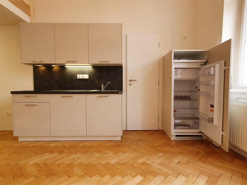 Byt je po kompletní vkusné rekonstrukci a je nezařízený nábytkem. K dispozici je kuchyňská linka se spotřebiči -  sklokeramická varna deska, digestoř, lednice, mikrovlnná trouba a pračka. Z nábytku je prostorné patro na spaní. V koupelně s denním světlem je sprchový kout a WC. Na podlaze jsou parkety a dlažba. Ohřev vody je bojlerem. Vytápění je kombinovaným plynovým kotlem společným pro 3 byty. Součástí bytu je i menší komora na patře přímo oproti bytu. Parkování je možné na ulici (modré zóny).