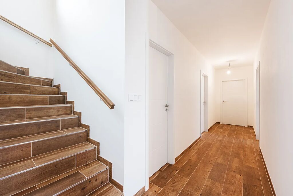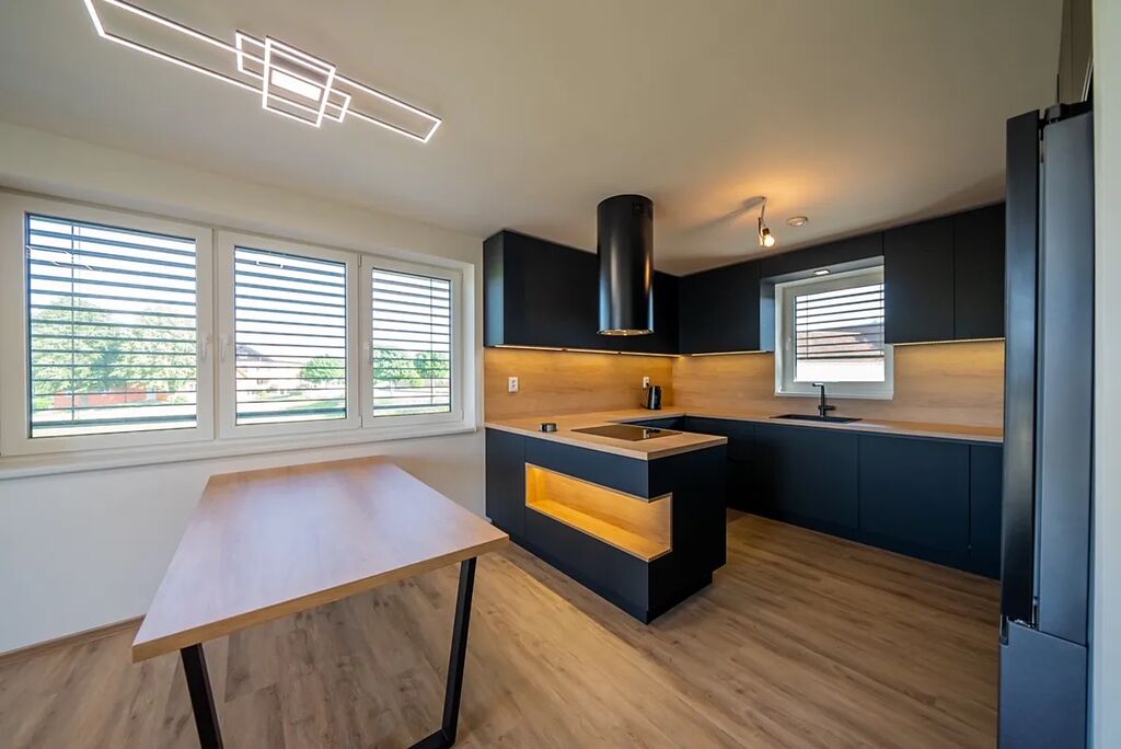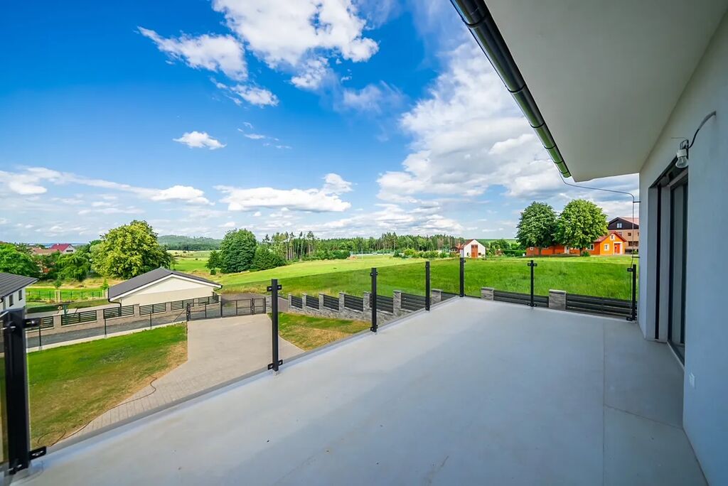 !!!PRODEJ DOMU PO VELKÉ SLEVĚ!!! Nabízíme k prodeji novostavbu moderního, patrového rodinného domu, o dispozici 5+kk s terasou a dvojgaráží s dílnou, která je situována na krásném místě, obklopena lesy a louky, v obci Miřetice, okr. Benešov. Dům leží na pozemku o celkové výměře 1181m2, zastavěná plocha domu je 178m2 a plocha užitná 259m2 vč. dvojgaráže, ale bez terasy domu, která má výměru 18m2. Dispozice domu - dům je stavěn terasovitě. V přízemí domu - vstup do domu ze zahrady - se nachází zádveří a navazující chodba (15m2), dvojgaráž (47m2), dílna nebo sklad (22m2), prádelna (7m2), hobby místnost (23m2) s výhledem do zahrady, technická místnost (10m2) se sprchovým koutem, umyvadlem a toaletou, dvě skladovací místnosti (10m2 a 4m2) a schodiště do patra. V obytné části domu - vchod z ulice - se nachází zádveří (6m2), chodba (12m2), obývací pokoj (33m2) s kuchyňským koutem - zde je instalována moderní kuchyňská linka vč. vestavných spotřebičů, jídelnou a vstupem na terasu domu, spíž (4m2), ložnice (11m2) se šatnou (5m2) a vlastní koupelnou (4m2) se sprchovým koutem, umyvadlem a toaletou, dva dětské pokoje (každý 13m2), koupelna (8m2) s vanou i sprchovým koutem a dvojumyvadlem, samostatné WC s umyvadlem (2m2) a šatna (5m2). Z terasy, na kterou se dostanete z obývacího pokoje je nádherný výhled do okolní přírody. Z prvního nadzemního podlaží lze lehkou úpravou vytvořit bytovou jednotku o dispozici 1+kk pro více generační bydlení se samostatným vstupem. Vytápění domu je řešeno tepelným čerpadlem typu vzduch/voda. Dále je v domě i rekuperace a dům je osazen žaluziemi na el. pohon. V obci se nachází obchod, zastávka autobusu. Škola a školka je ve 3km vzdálených Zdislavicích. Veškerá občanská vybavenost vč. obchodů, supermarketů, lékaře, škol a restaurací je v 8km vzdálené Vlašimi. Velmi dobrá je dostupnost do Prahy - automobilem trvá na cesta na stanici metra linky C Háje nebo Chodov cca. 35min. Dům lze financovat hypotékou. Půdorysy a další technické dokumenty rádi zašleme zájemcům mailem.