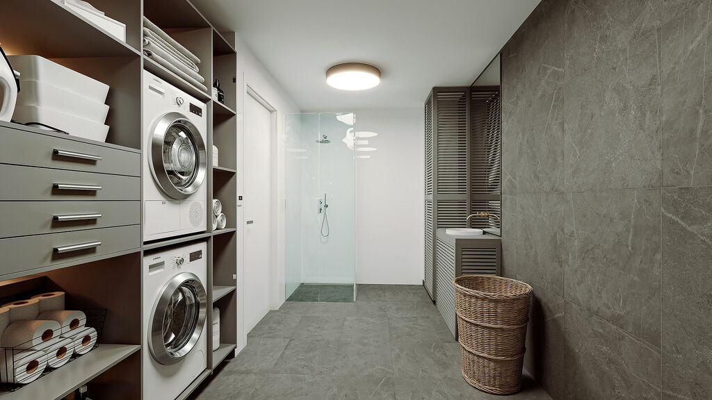 •	Technická místnost se sprchou, toaletou a privátní saunou