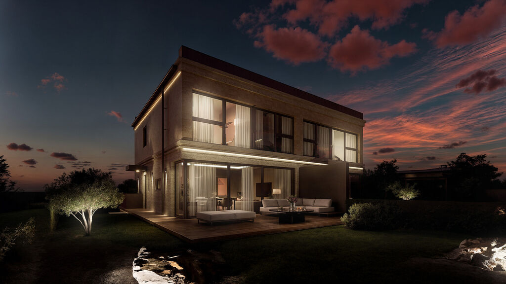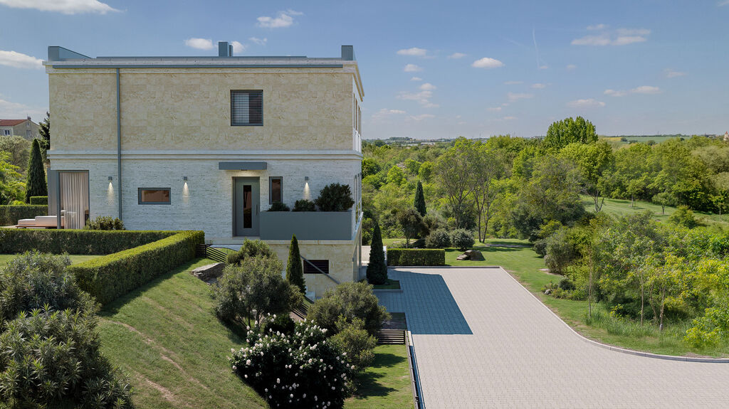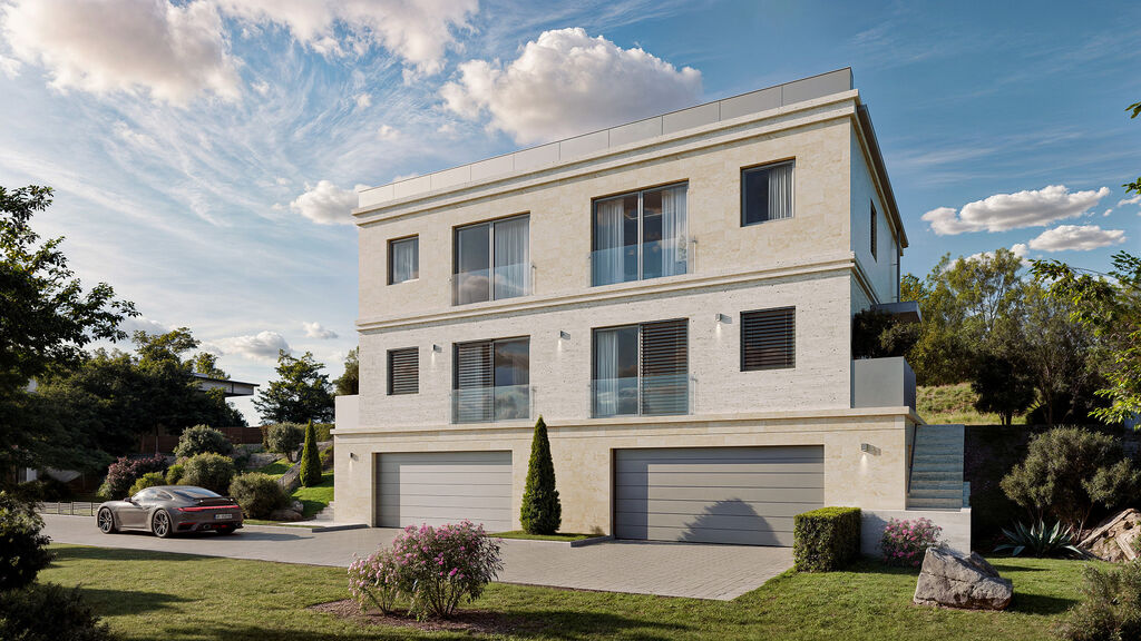 Nabízíme k prodeji nadstandardní novostavby vil s dispozicí 5+kk, užitnou plochou 176 m², terasou 25 m² a soukromou zahradou o velikosti 288 m². Každá vila spojuje moderní architekturu s duší italského stylu. Fasáda z pravého travertinu, dovezeného přímo z Itálie, působí jako elegantní šperk celého domu, který dokonale doplňuje designové venkovní osvětlení fasády a okolí. Večerní iluminace zvýrazňuje architektonické linie, umocňuje atmosféru celého prostoru a dodává vile výjimečný charakter. Luxusní materiály, dokonalé detaily a promyšlené dispozice vytvářejí prostředí, kde se snoubí design, komfort a rodinná pohoda.