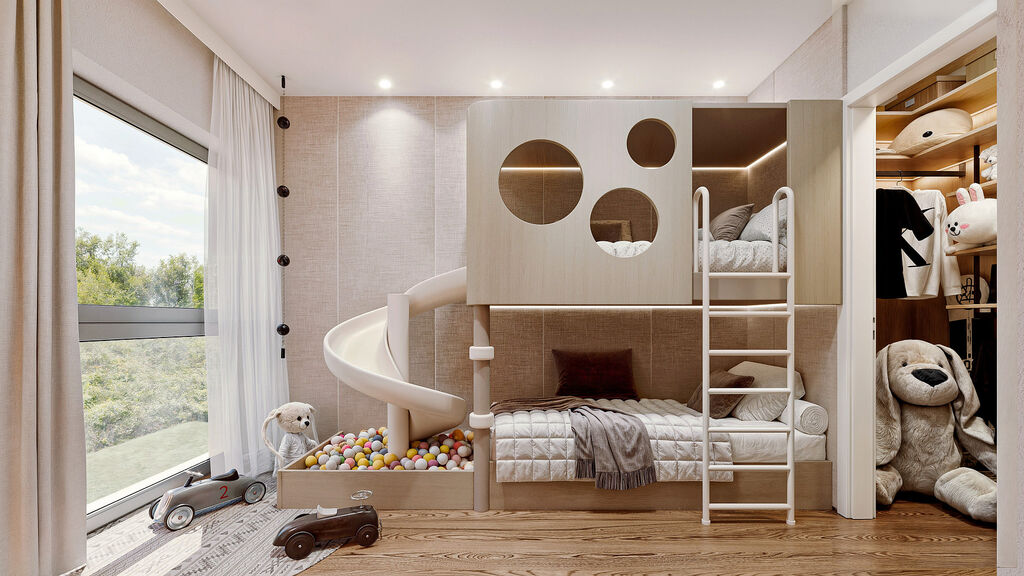 •	Dva dětské pokoje, každý s vlastní šatnou