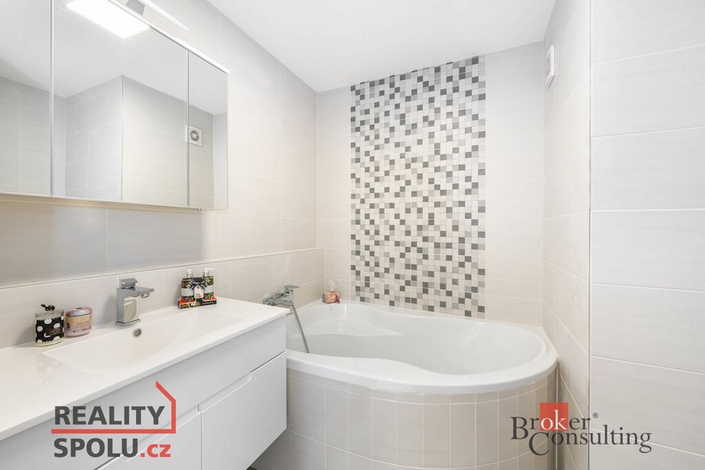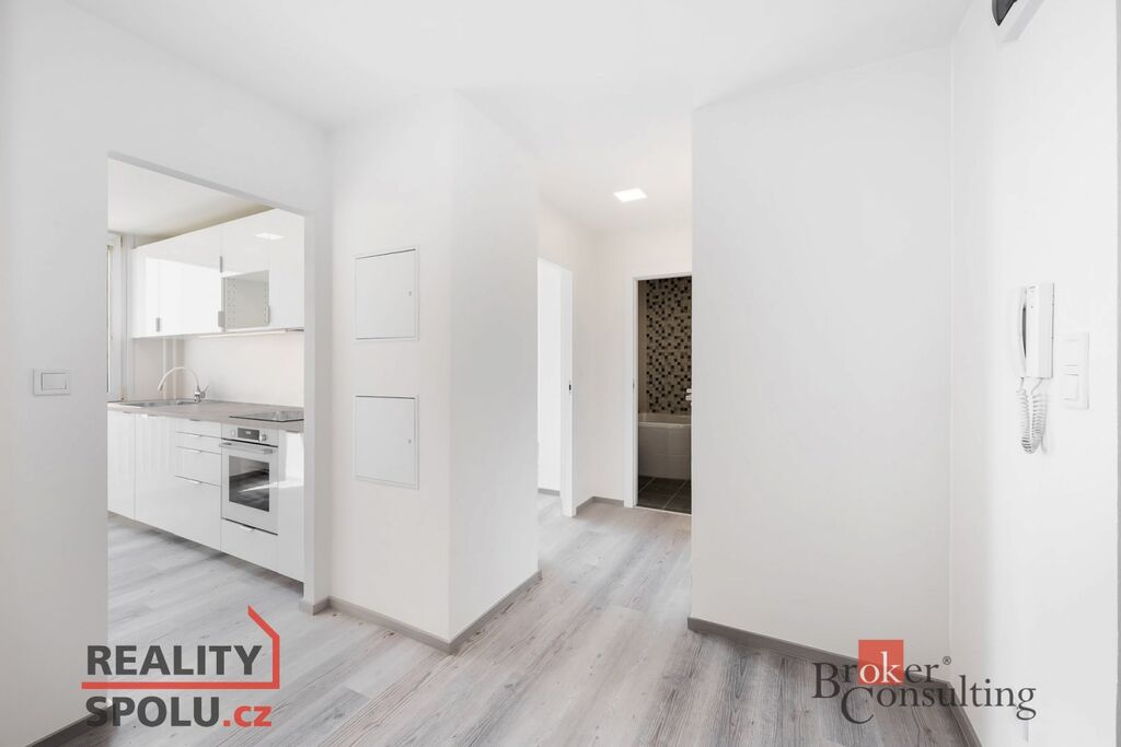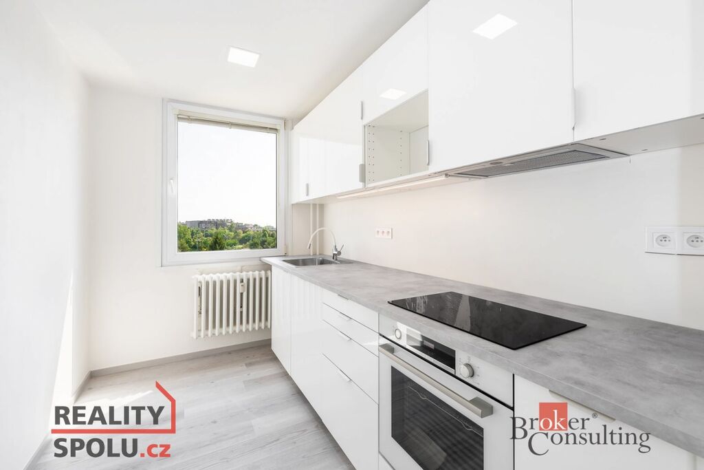 Byt je po kompletní rekonstrukci – byly použity kvalitní a nadstandardní materiály, jako jsou např. vinylové podlahy, bezfalcové interiérové dveře a sanitární zařízení. Nové jsou samozřejmě také veškeré rozvody vody a elektřiny. Součástí nájmu je vybavení bytu tak, jak je zachyceno na fotografiích, tedy plnohodnotná, kuchyňská linka s horkovzdušnou troubou a indukční varnou deskou. V předsíni vestavná skříň s úložnými prostory na míru.