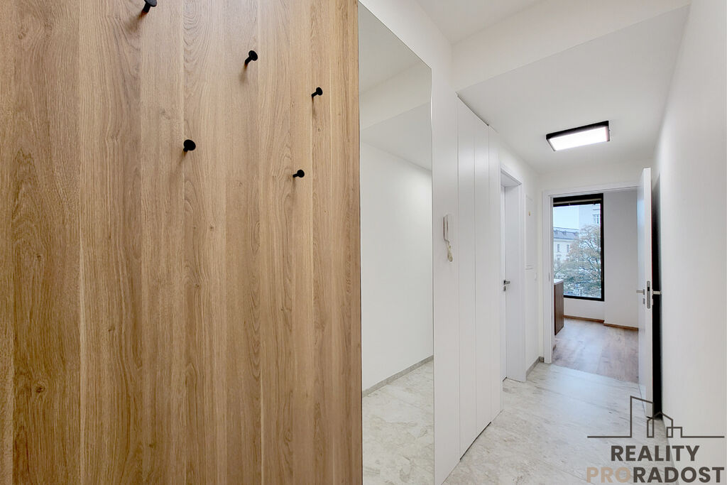 Nabízíme k pronájmu exkluzivní byt 2+kk (53 m²) v novostavbě na prestižní adrese Slovákova, jen pár kroků od Moravského náměstí a parku Lužánky.