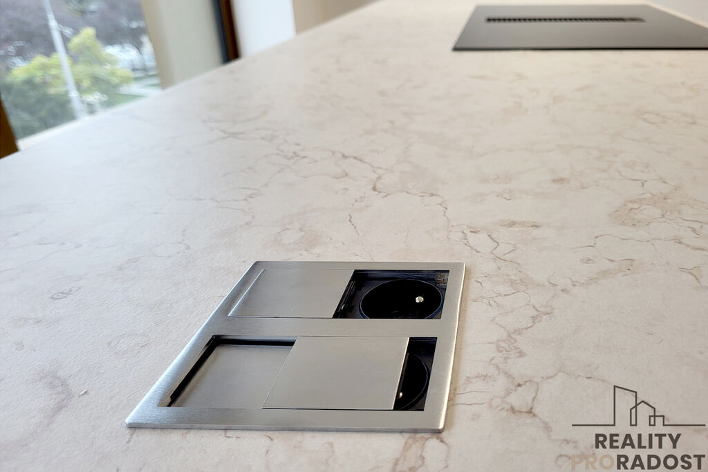 ✅ moderní kuchyňská linka s ostrůvkem a integrovaným odtahem,
