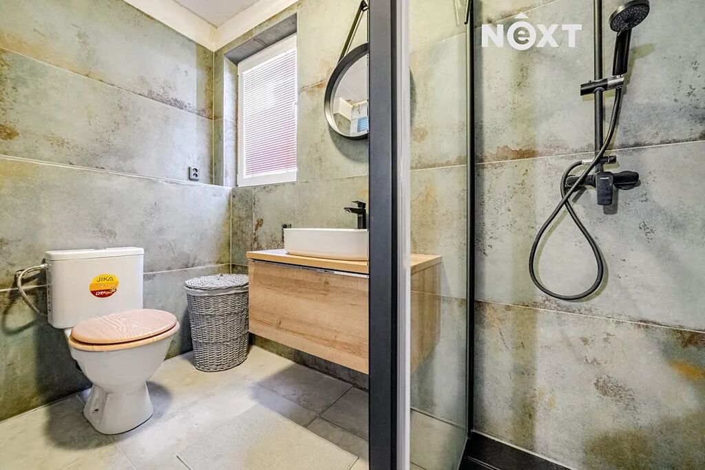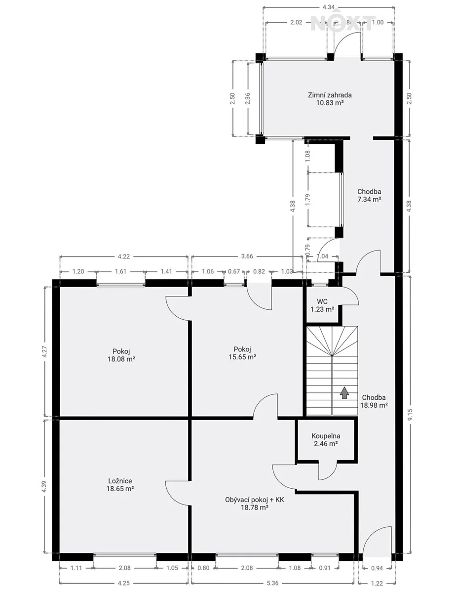 Už při vstupu vás přivítá dlouhá chodba, ze které se dostanete do obou jednotek i sklepa. V 1.NP vkročíme do menší chodby a odtud do světlého obývacího pokoje s kuchyňským koutem, tří samostatných ložnic, koupelny, odděleného WC a útulné zimní zahrady, ideální pro ranní kávu i večerní klid. Z přízemí vede schodiště do patra i do sklepa.