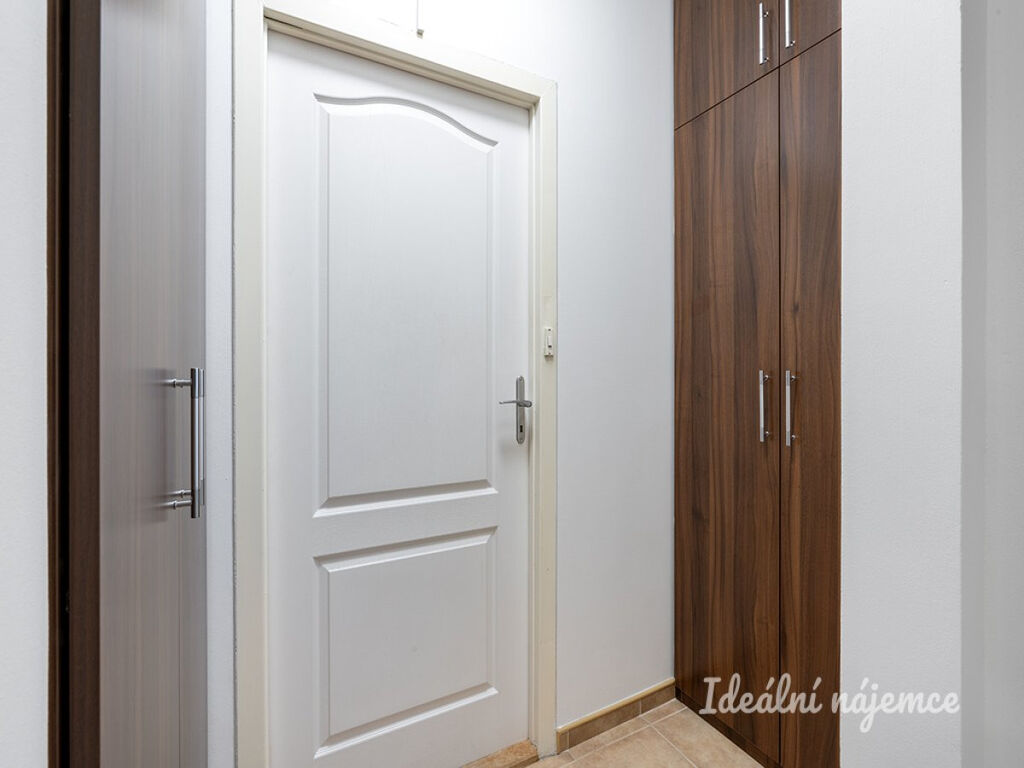 Byt se nabízí částečně vybavený. Kuchyně disponuje lednicí s mrazákem, myčkou, elektrickým sporákem, mikrovlnnou troubou a digestoří. Obývací pokoj je zařízený pohovkou, konferenčním stolkem, jídelním stolem s 2 židlemi a skříňkou. Součástí ložnice je postel s matrací. V druhém pokoji najdeme pracovní stůl s židlí a šatní skříň. V koupelně je vana, umyvadlo, zrcadlo, koupelnová skříňka a pračka. Toaleta je umístěna samostatně.