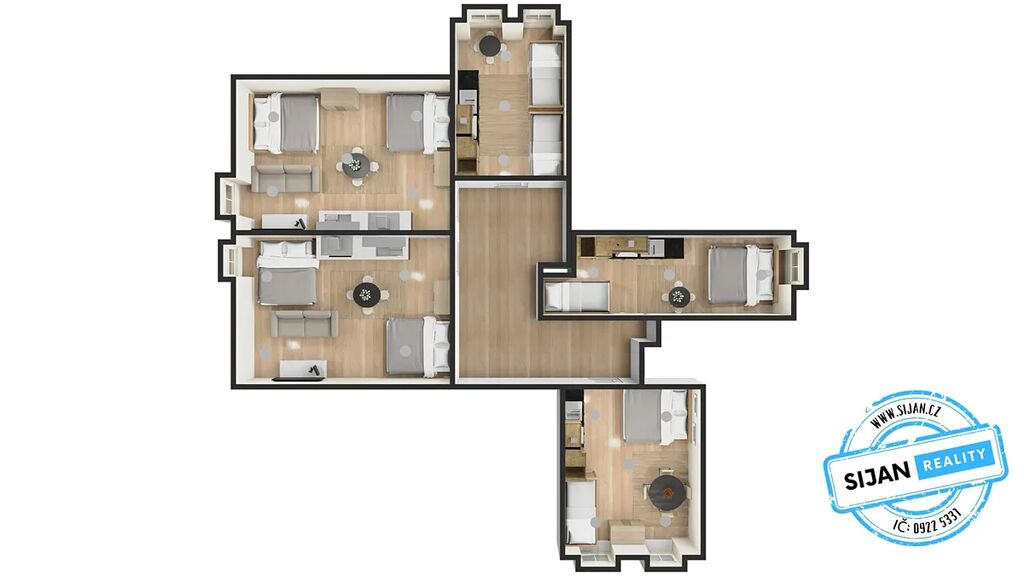 Součástí nabídky jsou i vizualizace přestavby penzionu na moderní apartmány s wellness a barem, které naznačují možný směr rozvoje této atraktivní nemovitosti.