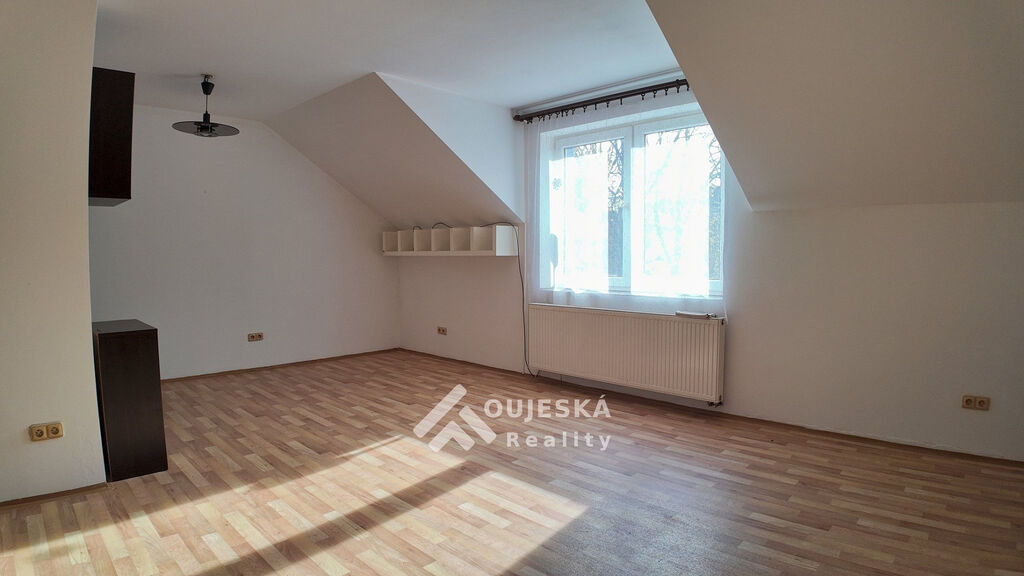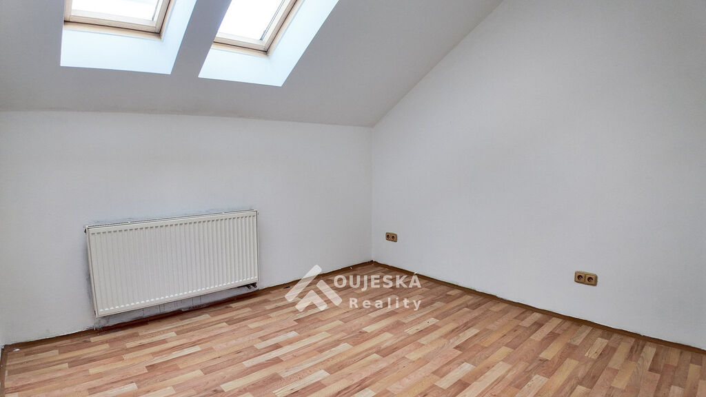 Byt o velikosti 103 m² se nachází v 1. patře cihlového domu. Nabízí pohodlný obývací pokoj s kuchyňským koutem a jídelnou, prostorné ložnice, podkrovní pokoj, koupelnu s vanou a samostatné WC.