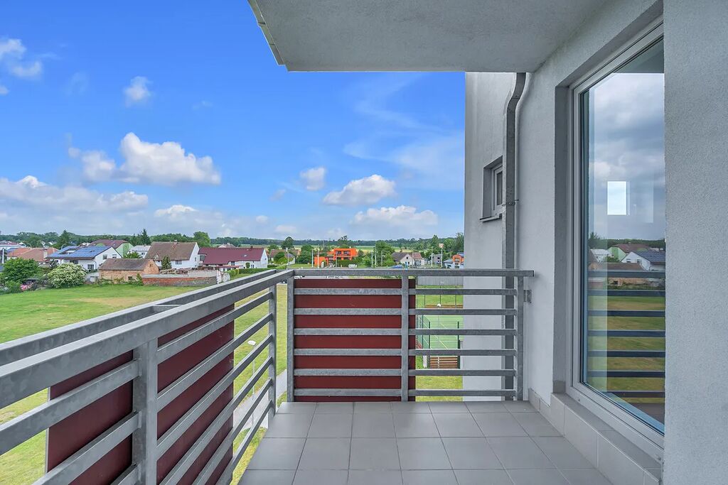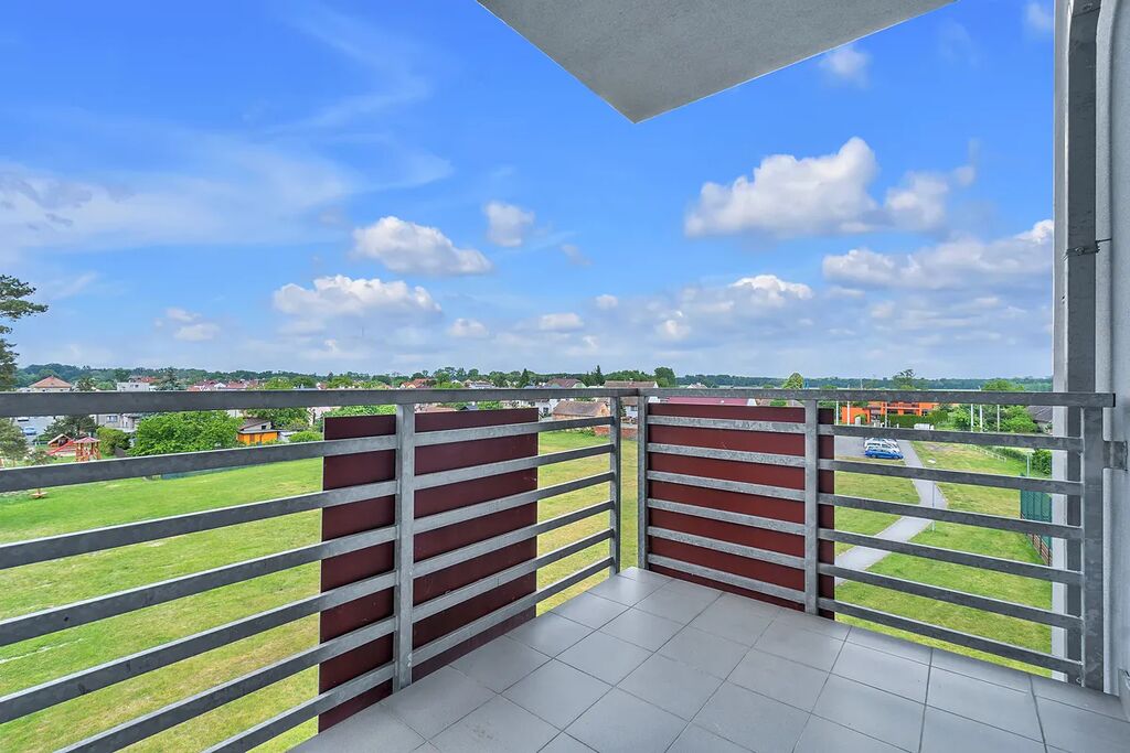 K bytu náleží příjemný balkon o rozloze 5,6 m², poskytující prostor pro relaxaci a výhled do okolí. Byt se pronajímá částečně vybavený, zahrnující kuchyňskou linku s troubou, pračku, obývací stěnu a šatní skříň.