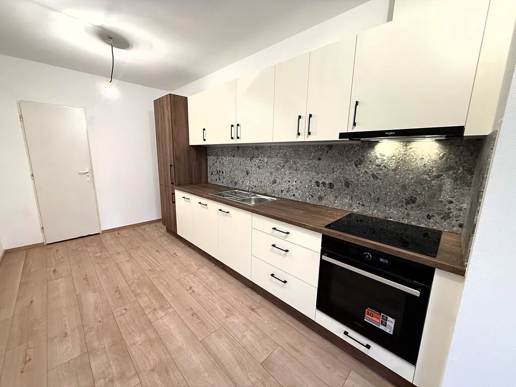 Dispozičně se v bytě nachází vstupní chodba, velmi prostorný hlavní obytný prostor s kuchyní a místem pro obývací a jídelní část. Dále je zde ložnice, koupelna se sprchovým koutem, umyvadlem, pračkou, otopným žebříkem a samostatná toaleta. Kuchyňská linka je nová (nikým doposud neužívaná) a je vybavena troubou, indukční varnou deskou, myčkou, digestoří a džezem (lednice s mrazákem bude dokoupena). Z místností se v bytě dále nachází velmi praktická technická místnost za kuchyní.