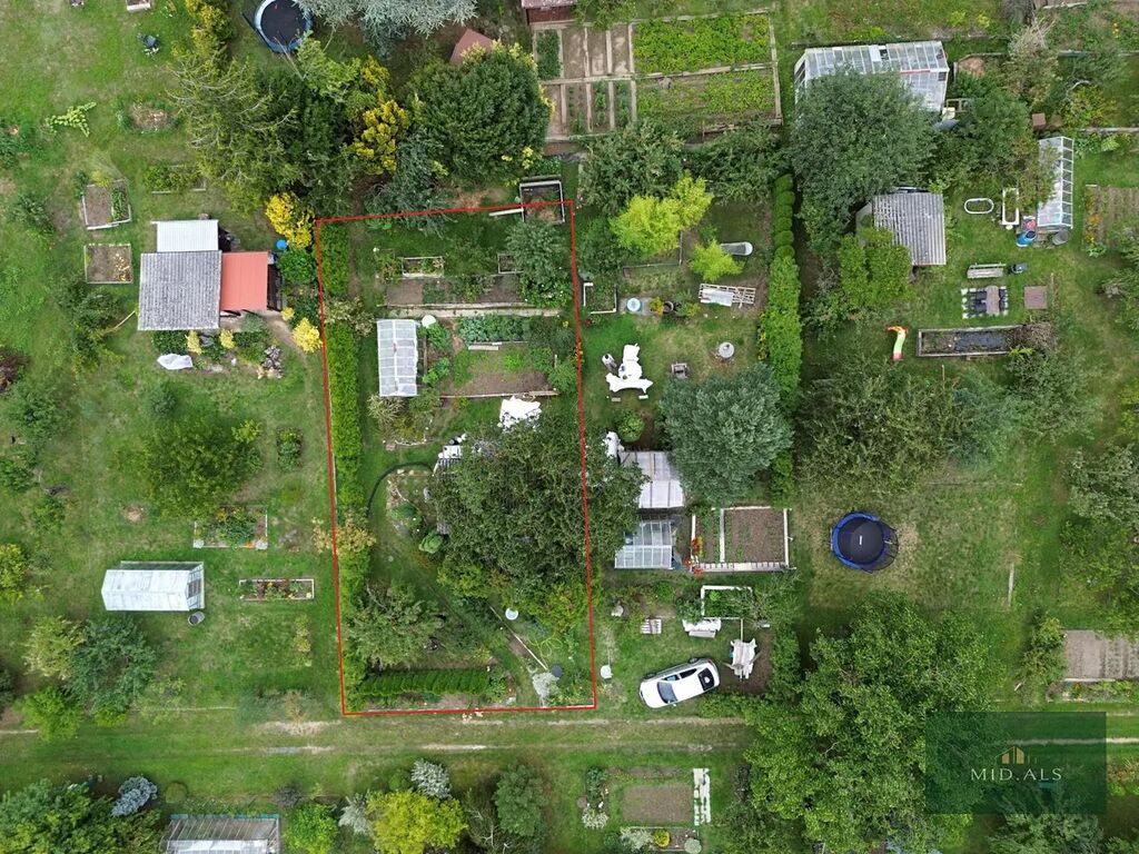Zahrádka má celkovou výměru 341 m2, z toho zastavěná plocha zahradním domkem je 9 m2.