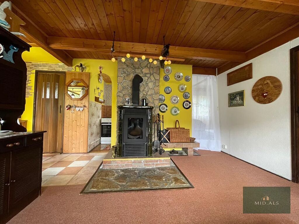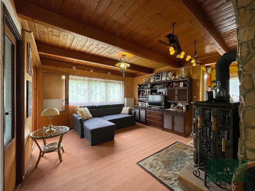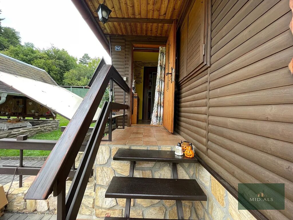Chata ( zastavěná plocha 46 m2 ) - podsklepená, na betonové podezdívce, dřevěná se zateplením, ve skvělém stavu, střecha plechová, podlahy v patře prkenné, pokryty dlažbou či kobercem.