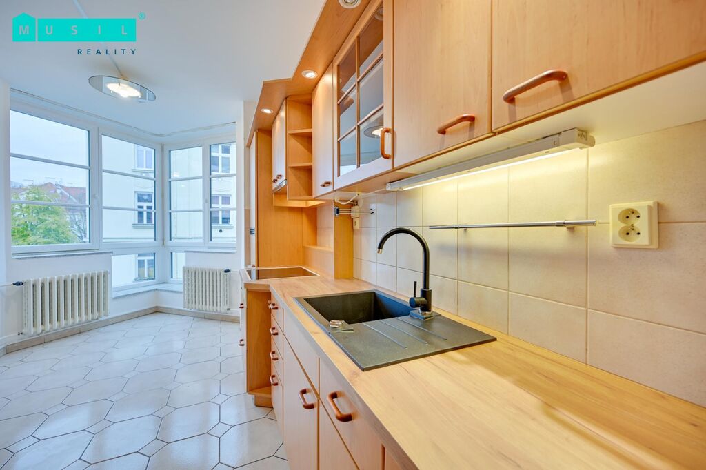 Pronájem krásného, slunného, reprezentativního bytu o dispozici 3+1 na ulici Bezručova v centru města Olomouce. Byt se nachází ve 3. patře cihlového domu s výtahem a má výměru 119 m2. Nemovitost se skládá ze samostatné kuchyně, prostorného obývacího pokoje a dvou ložnic. Z obývacího pokoje je vstup na balkón, který nabídne místo pro odpočinek u šálku dobré kávy. V bytě se nachází také prostorná šatna, která nabídka společně s vestavěnými skříněmi dostatek úložných prostor. Luxusní prostorná koupelna je vybavena sprchovým koutem, vanou a velkým umyvadlem. Vytápění nemovitosti je vlastním plynovým kotlem. Nadstandardní a moderní provedení celého bytu. Ideální lokalita v těsném sousedství rekreační zóny městských parků, avšak téměř v samotném historickém centru města. Bezproblémové parkování v suterénu domu za příplatek 1000 Kč/měsíc. Plyn a elektřina přepisem na nájemníky. Kauce vybírána ve výši dvou měsíčních nájmů, provize RK jeden měsíční nájem + DPH, Doporučujeme prohlídku. Cena: 19.900,- Kč/měsíc + energie + 1.000 Kč/garážové stání.