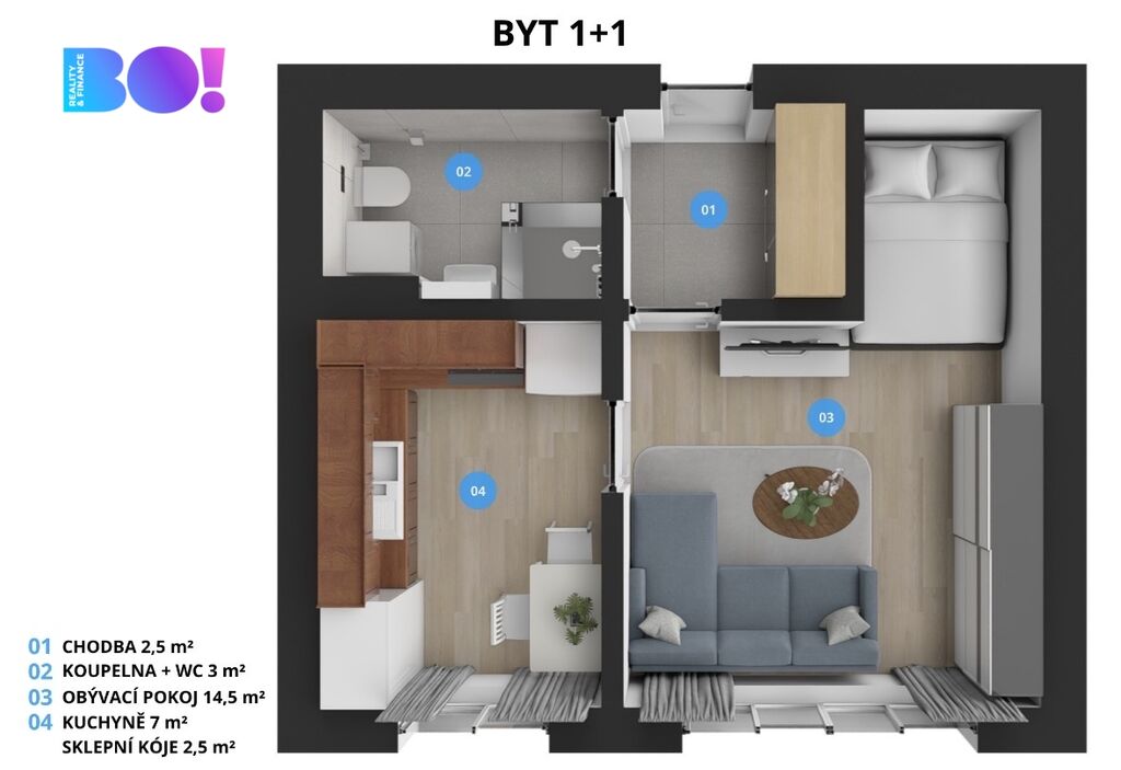 BO! Reality s radostí představuje útulný, sluncem zalitý byt 1+1 o výměře 27 m² na ulici Jaroslava Lohrera ve Frýdku‑Místku.