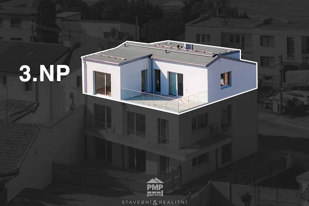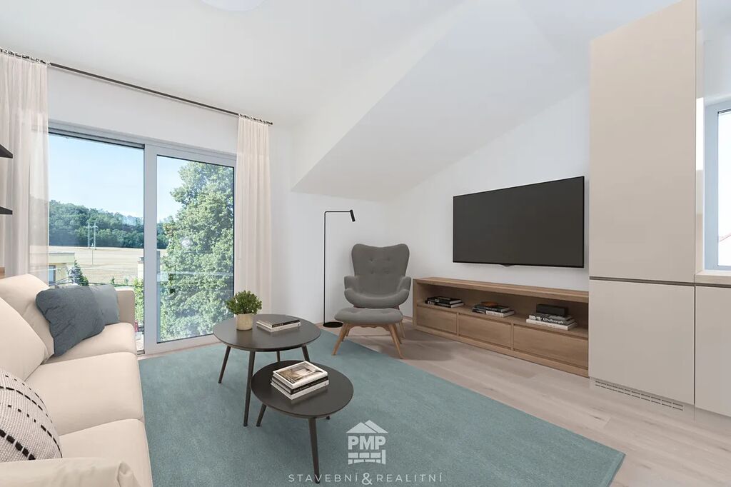 Byt se nachází v podkroví novostavby rodinného domu, která zahrnuje pouze tři bytové jednotky – každou na samostatném podlaží. Díky tomu si můžete užívat soukromí a klid, jaký běžné bytové domy nenabízejí. Hlavní dominantou této jednotky je prostorná terasa o velikosti 25,4 m², ideální pro posezení s rodinou a přáteli, relaxaci u kávy nebo večerní sklenku vína s krásným výhledem do okolní přírody.