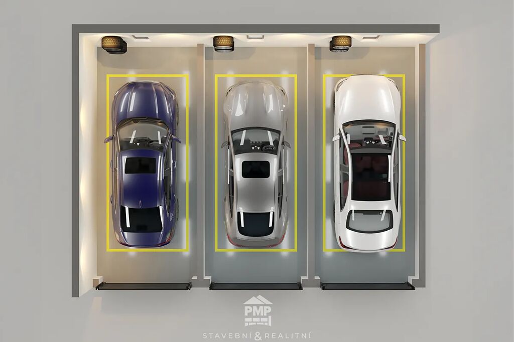 Součástí bytu je rovněž garáž s nadstandardní hloubkou 7 metrů, kam pohodlně zaparkujete i větší vůz nebo motocykl. K bytu náleží i vlastní venkovní parkovací stání.