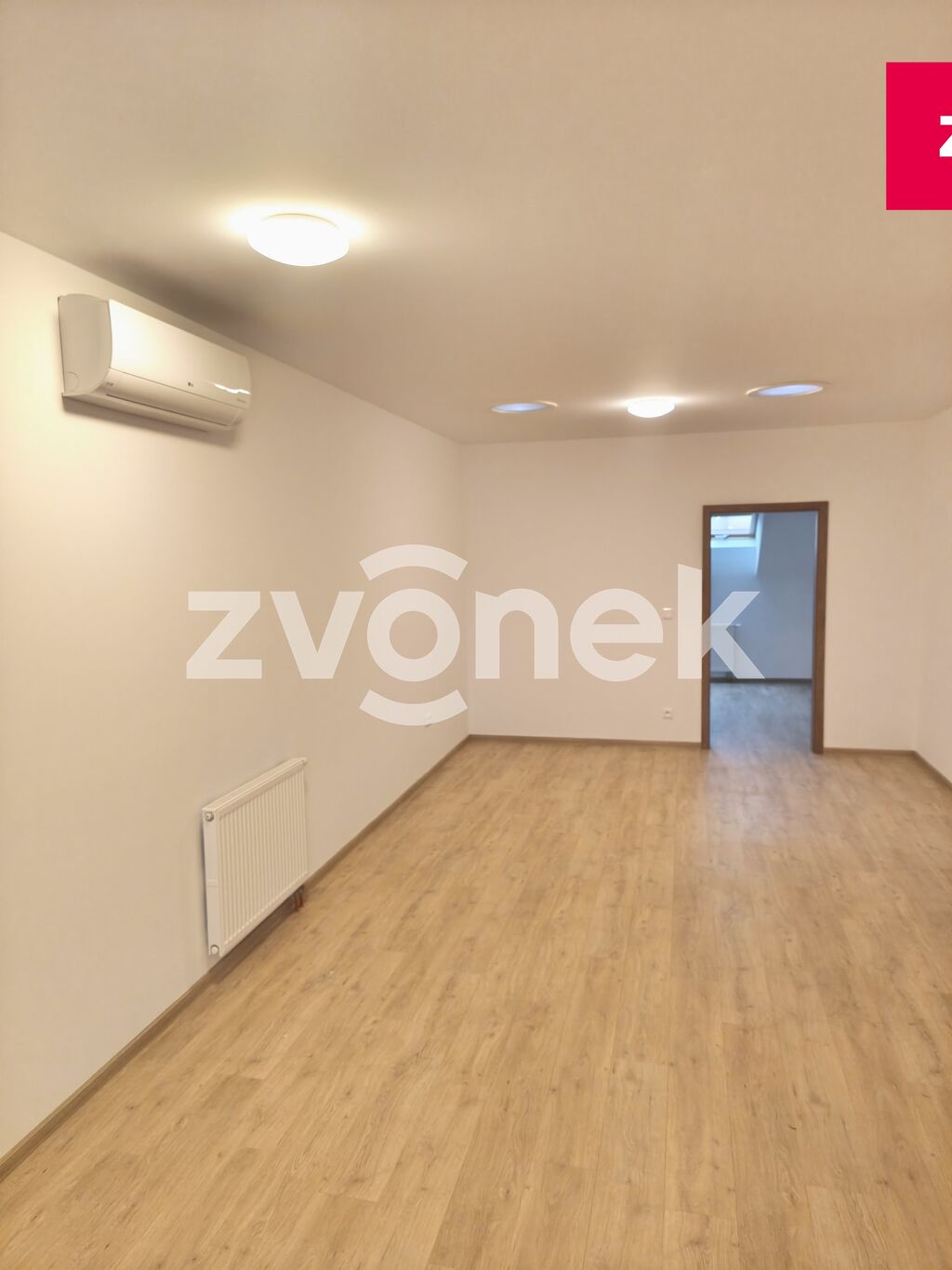 V bytě jsou vinylové podlahy, obložkové zárubně, venkovní rolety na oknech a klimatizace.