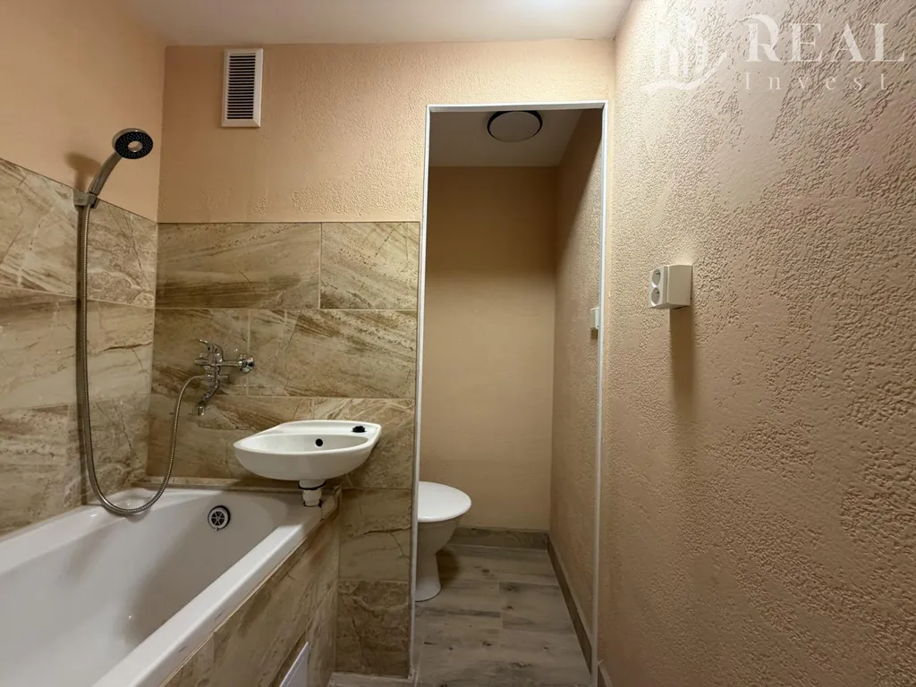 Dispozice bytu nabízí prostorný obývací pokoj, kuchyň s novou linkou, koupelnu s vanou a toaletou. K bytu náleží také balkon.