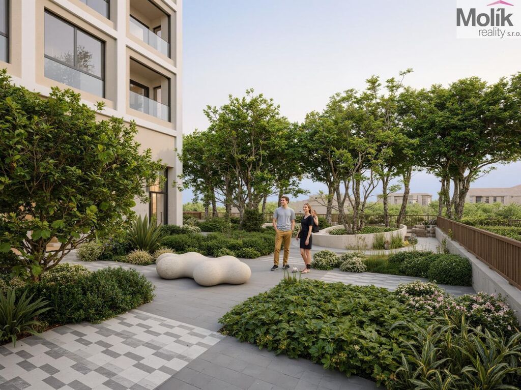 Apartmán o celkové ploše 60,9 m nabízí promyšlenou dispozici s prostorným obytným prostorem a velkou verandou o rozloze téměř 14 m, odkud si vychutnáte ranní kávu s výhledem na zeleň a mořský vánek, který se nachází v 5.patře 6.-ti podlažní budovy.