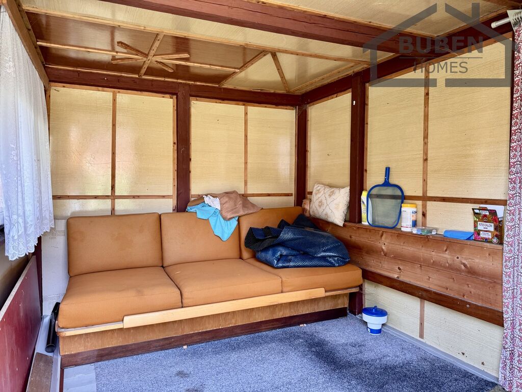Předmětem prodeje je krásná a udržovaná zahrada, která má výměru 315 m². Zahrada se nachází v klidné části Konstantinových Lázní a nachází se na ní zahradní chata s jednou obytnou místností, kuchyňkou a chemickým WC. Na zahradě je také prostorný altán, skleník, dětské hřiště, bazén (vše je součástí prodeje) a také několik vzrostlých okrasných dřevin a záhonů, které dělají z této zahrady ideální místo k odpočinku.