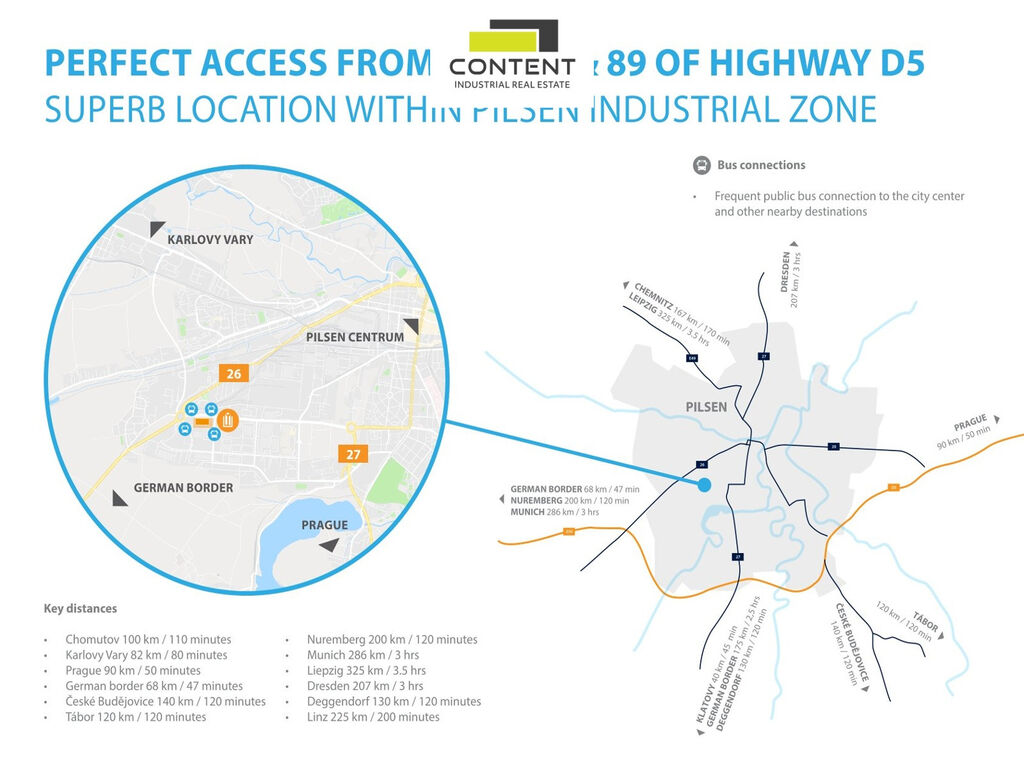 V zastoupení majitele a bez provize nabízíme prostory vhodné pro sklad, výrobu nebo velkoobchod v industriální zóně Plzeň - Borská pole, s výborným napojením na D5.