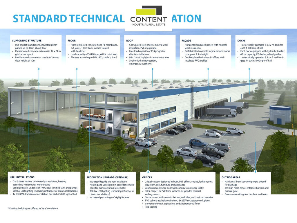 - sociální zázemí a kanceláře jsou k dispozici v rámci objektu, dle specifikace nájemce