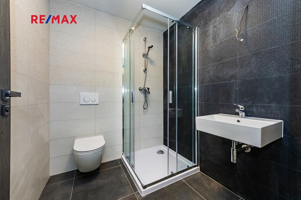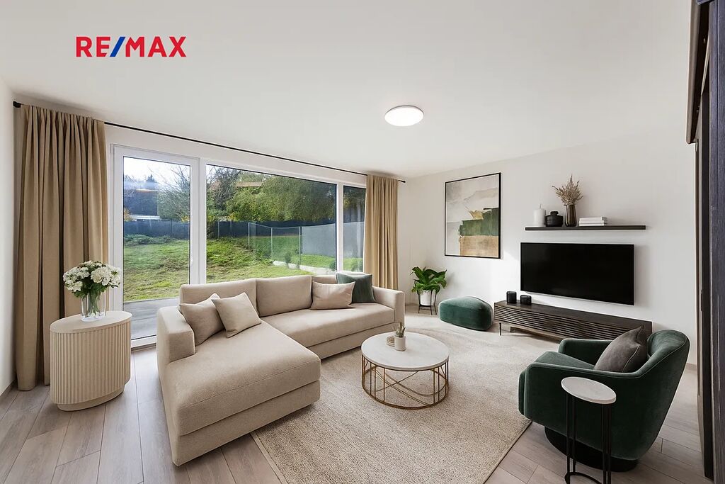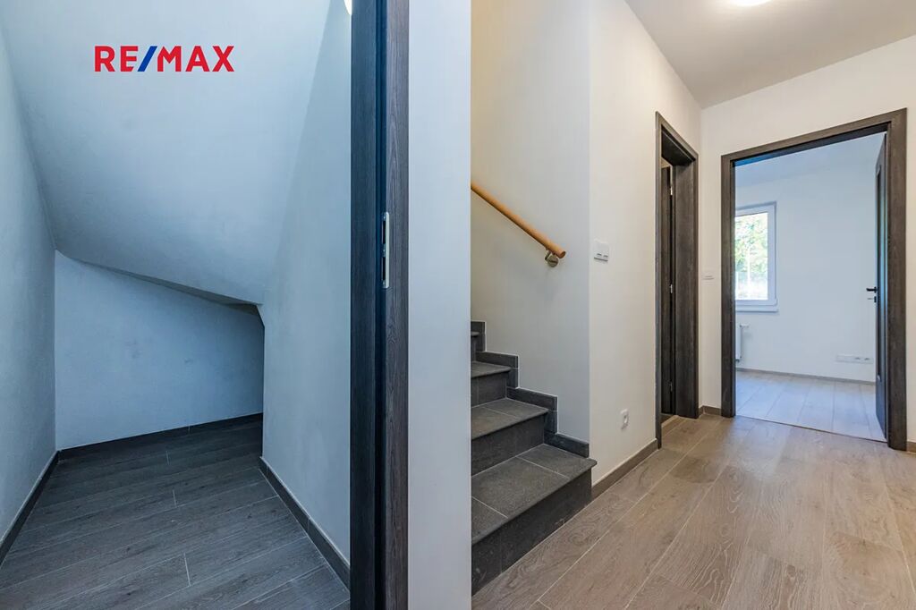 Vybavení domu odpovídá vysokému standardu – klimatizační systém LG s invertorem, kondenzační kotel BOSCH/Vaillant, plastová okna SALAMANDER s trojskly, laminátové podlahy Oak Light, koupelnová keramika Mexen, armatury Grohe, vany Kaldewei, dveře Lorient Jasan grafit, terasy z WPC kompozitu a vstupní dveře Thermo 64 Singen INO.