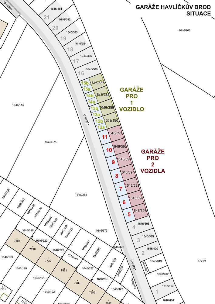 Nabízíme k prodeji novostavbu garáže aparkovacím místem před garáží pro jedno vozidlo s elektricky ovládanými sekčními vraty. Včetně pozemku pod garáží.