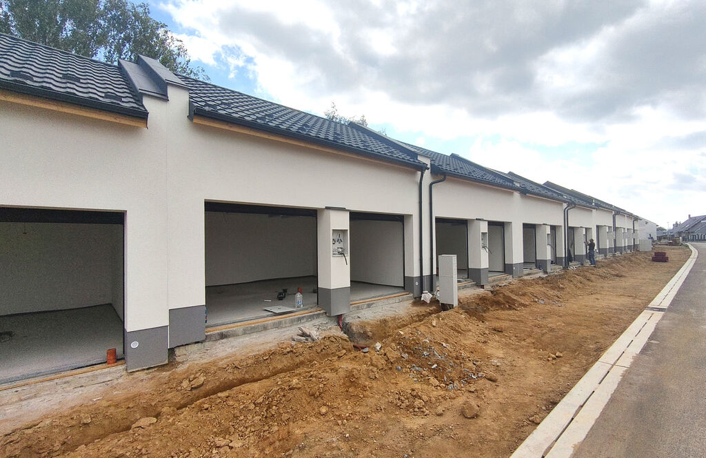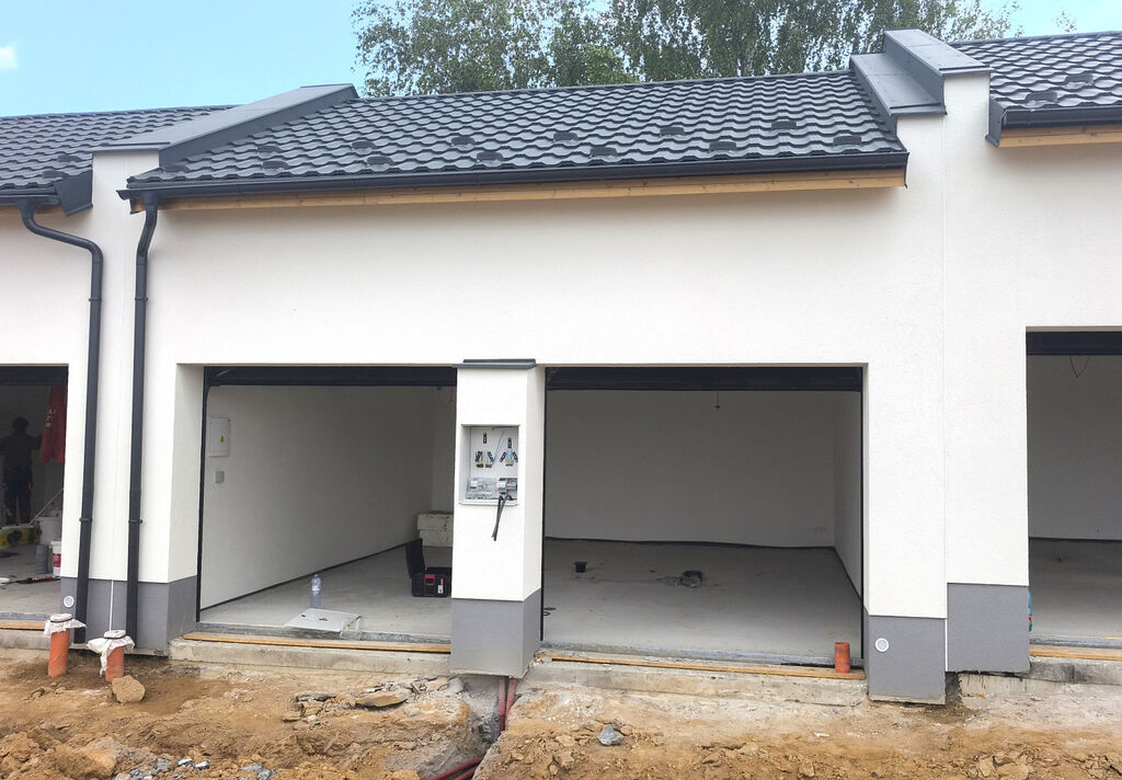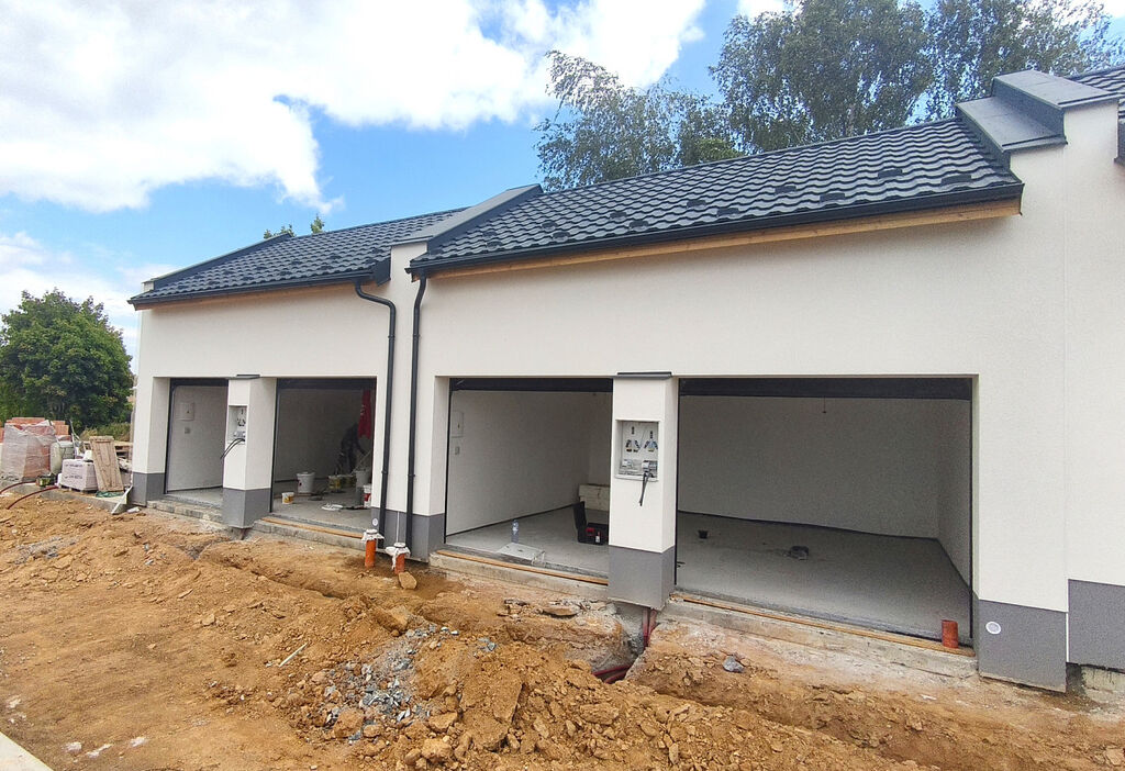 V současné chvíli probíhá hrubá stavba. Fotografie hotových garáží jsou pouze ilustrační.