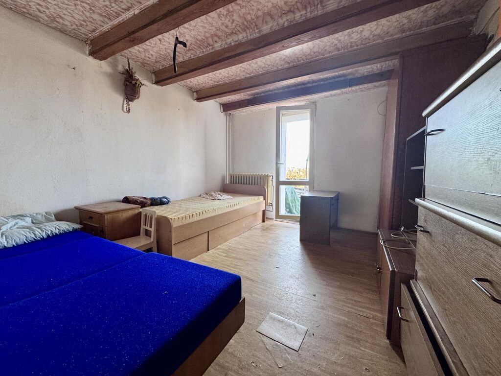 Dva oddělené pokoje jeden ve spodním patře, druhý v podkroví se šikmým stropem a velkou terasou (40m2) samostatné WC se sprchvým koutem - hned u vchodu