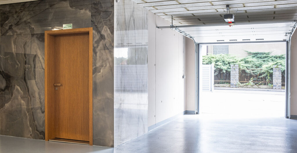 • Parkovaní pro 9 aut, 5 v garážích a 4 na pozemku