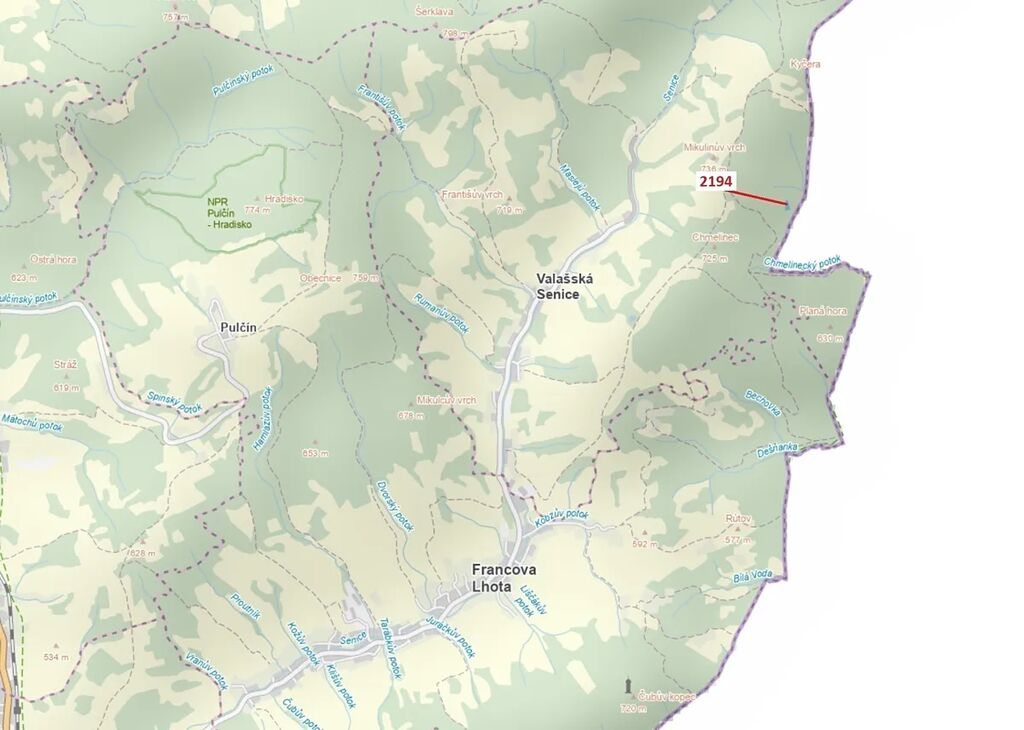 Lesní pozemek o výměře 1662 m2, parcelní číslo 2194, podíl 1/1, katastrální území Valašská Senice, obec Valašská Senice, obec s rozšířenou působností Vsetín, okres Vsetín, Zlínský kraj.