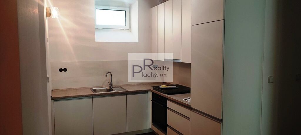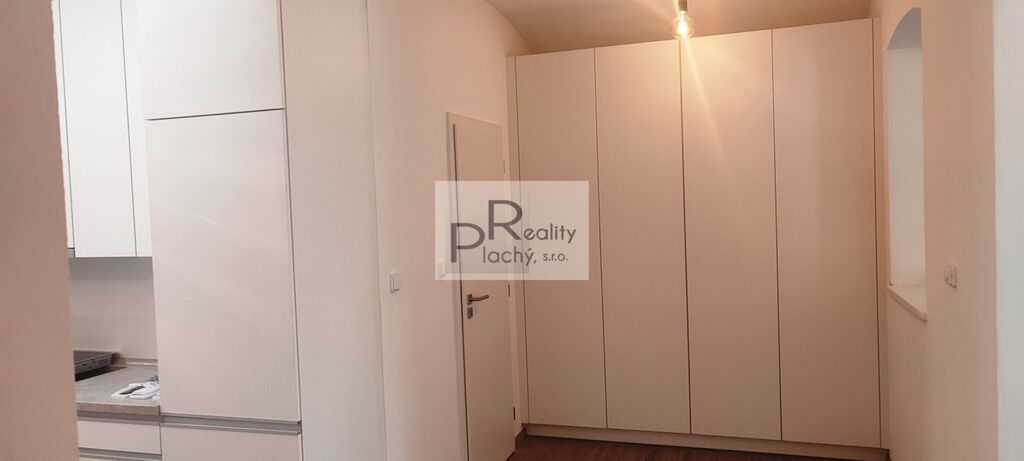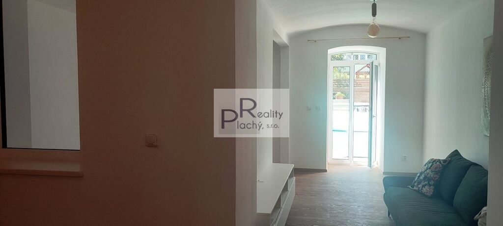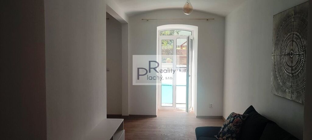 Byt ve sníženém přízemí menšího bytového domu je architektonicky velmi zajímavě vyřešený. Celý je koncipován jako moderní, otevřený prostor. Předsíň volně přechází do kuchyně, která je otevřená do bývacího pokoje. Ložnice je částečně oddělena od obývacího pokoje zdí. Z pokoje i ložnice vedou prosklené dveře na malou soukromou terasu. Byt je částečně zařízený. Vytápění je podlahové elektrickým kotlem, ohřev vody el. bojlerem. Nájemné je 12.000,– Kč měsíčně + 500,– Kč záloha na vodné. Elektřina bude přepsána na nájemníky. Vratná kauce 20.000,– Kč. V domě jsou společné prostory pro uskladnění kol, nebo kočárků a sušárna. Volný od 01.01.2026