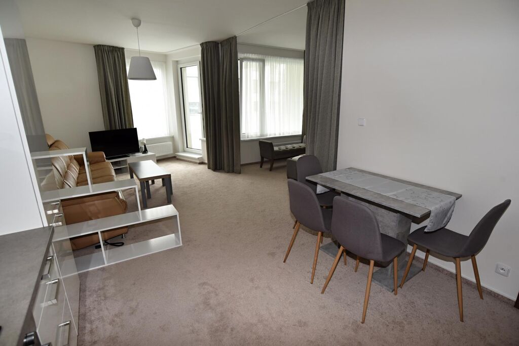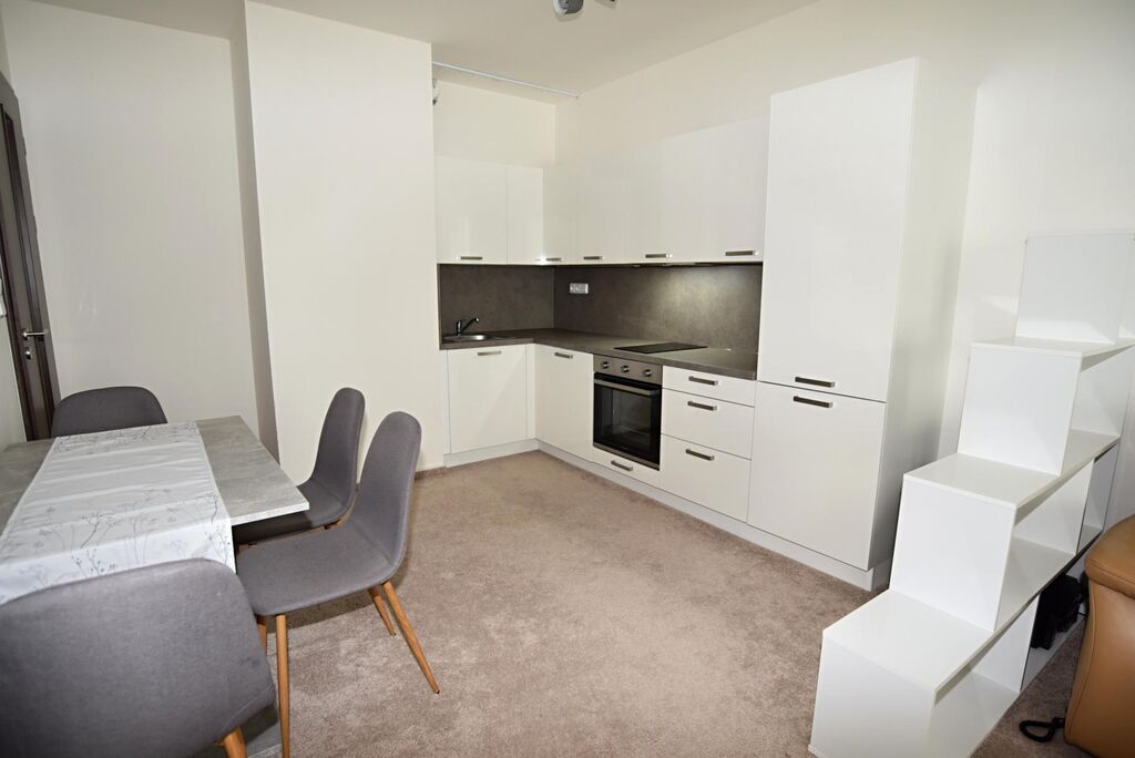 Samotný byt má 57 m, doplněných o balkon o velikosti 6 m s východní orientací, který poskytuje příjemný výhled do zeleně a okolní zástavby. Byt je kompletně vybavený a připravený k okamžitému nastěhování. Nachází se zde elegantní kuchyňská linka na míru se zabudovanými spotřebiči (lednice s mrazákem, varná deska, trouba a myčka nádobí), útulný obývací prostor s přímým vstupem na balkon, ložnice funkčně propojená s obytnou částí a prostorná vstupní chodba.