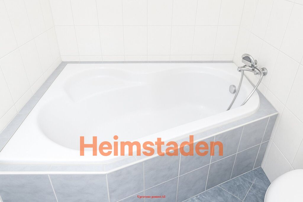 V bytě je nová kuchyňská linka s vestavnými spotřebiči a koupelna s rohovou vanou.