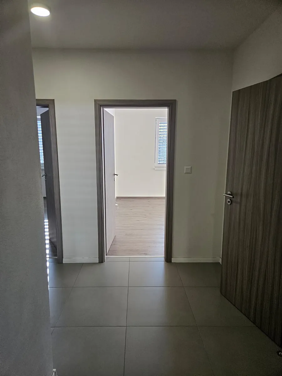 Tento byt se skládá ze vstupní chodby, prostorného obývacího pokoje s kuchyňským koutem se vstupem na terasu, ložnice, pokoje, samostatné koupelny a wc. Pro úložné prostory slouží šatna a komora. K bytu dále náleží 2 parkovací stání.