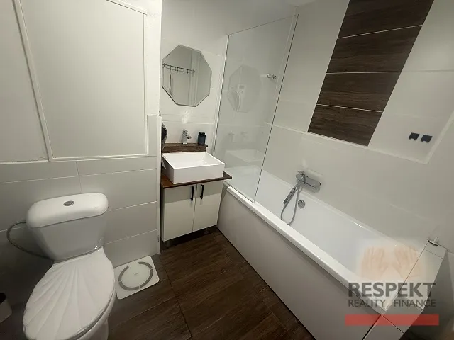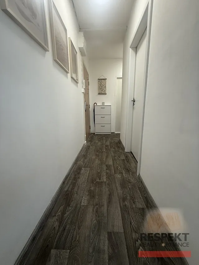 Byt je z velké části zrekonstruovaný: zděné jádro, rozvody vody, odpadu a elektřiny v jádru, kuchyňská linka se spotřebiči (indukční deska, digestoř, el. trouba, připojení na myčku), koupelna s vanou se zástěnou s místem pro pračku a sušičku, podlahy (dlažba, PVC krytina), částečně štuky na zdi, interiérové dveře, praktické rolety v obývacím pokoji, žaluzie v ložnicích, bezpečnostní vstupní dveře.
