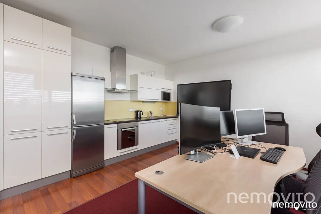 Pronájem bytu či kanceláře 2+kk s plochou 56 m2 ve třetím podlaží budovy, ke kterému je možnost přičlenit i velký sklad s garáží (16,5 m2, není aktuálně součástí ceny) a až 5 možných parkovacích míst v uzavřeném areálu. Byt je možné využívat také jako kancelář - majitel se komerčnímu využití nebrání. Prostor je nabízen bez vybavení, tedy prázdný, a čerstvě vymalovaný.