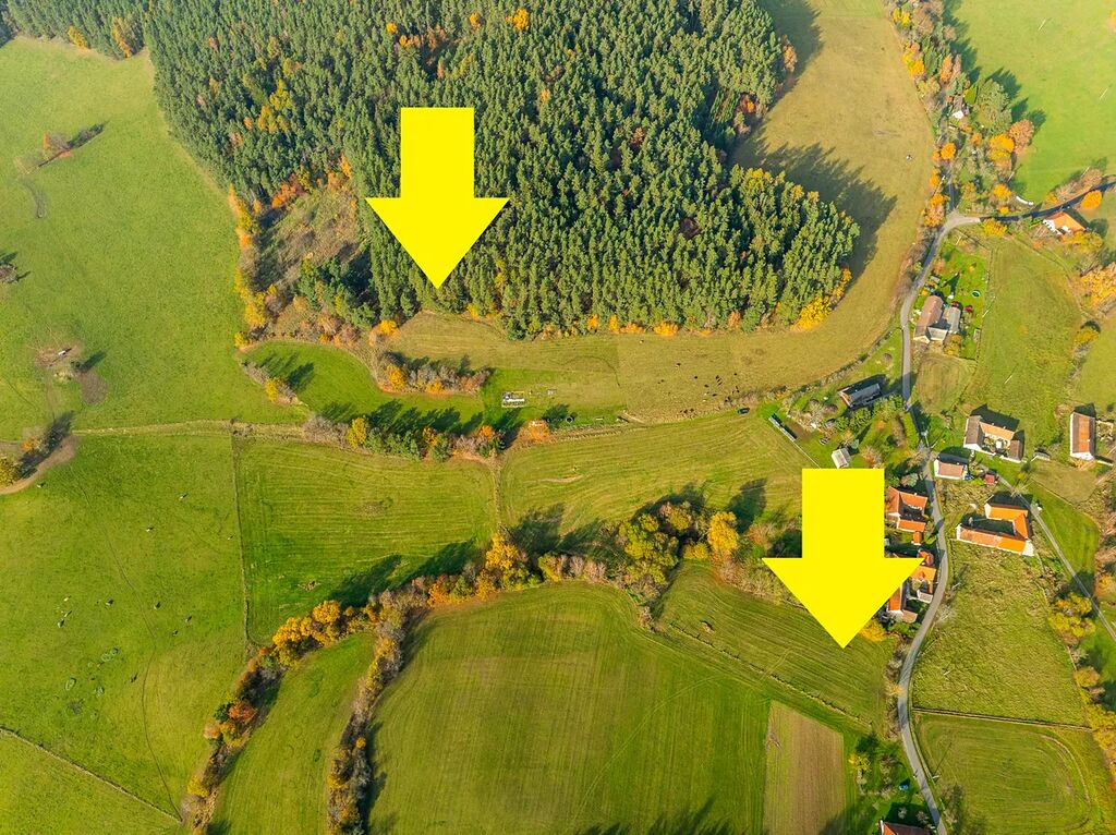 Velkorysý pozemek pro stavbu Vašeho vysněného domova nebo venkovského sídla v předhůří CHKO Šumava, na okraji obce Bušanovice – Benedy a Úlehle u Předslavic, celkem 40.045 m2.