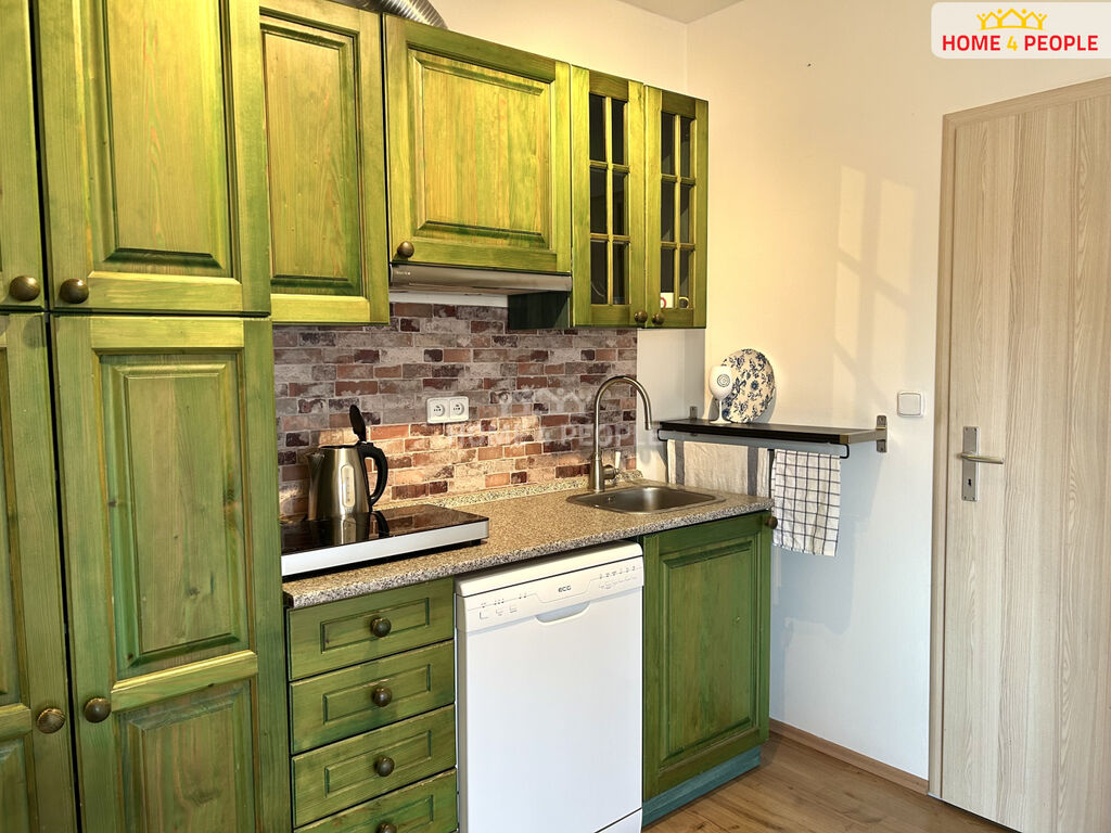Interiér je řešen velmi prakticky a nabízí komfortní bydlení. Kuchyňský kout je vybaven myčkou, lednicí, digestoří a dvouplotýnkovým indukčním vařičem. V koupelně se sprchovým koutem je umístěna pračka, toaleta je oddělená. K bytu náleží také balkón o velikosti 5 m², odkud je krásný výhled na město a okolí. O teplo domova se stará podlahové vytápění napojené na plynový kotel. Budova má energetický štítek třídy D.