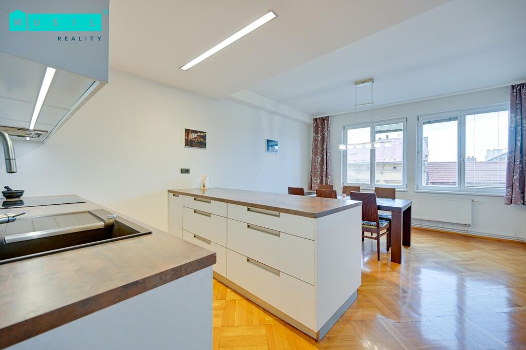 Nabízíme k pronájmu prostorný byt s výměrou 100 m2 o dispozici 3+1 s orientací na východ a západ. Byt je umístěný v historické budově s výhledem do uzavřeného dvora a na náměstí, nachází se ve 4 NP budovy s výtahem po revitalizaci. Stylové bydlení spojuje historické prvky s luxusním bydlením v domě na Dolním náměstí v Olomouci. Byt je vkusně opravený a jsou zde dřevěné parkety. K dispozici je připravena nájemníkovi kuchyňská linka včetně spotřebičů (varná deska, odsavač par, trouba, myčka nádobí). Ložnice a druhý pokoj jsou orientovány do vnitrobloku, tedy klidné části. Z kuchyně a obýváku je krásný výhled na centrum. Světlá koupelna je vybavena vanou, sprchovým koutem a velké umyvadlo. WC s umyvadlem a bidetem je samostatně. Byt má šatnu a praktickou technickou místnost. V bytě zůstává pračka a sušička. Vytápění nemovitosti je zajištěno vlastním kotelnou v domě. Chcete si dopřát exkluzivní bydlení v centru města Olomouce s ojedinělým Genius loci, V tomto případě Vás srdečně zveme na prohlídku. Cena pronájmu 22.900 Kč/ + 3.500,-energie, Elektřina zálohy 1.200,-Kč. Kauce ve výši dvou měsíčních nájmů, provize RK 22.900 + DPH.